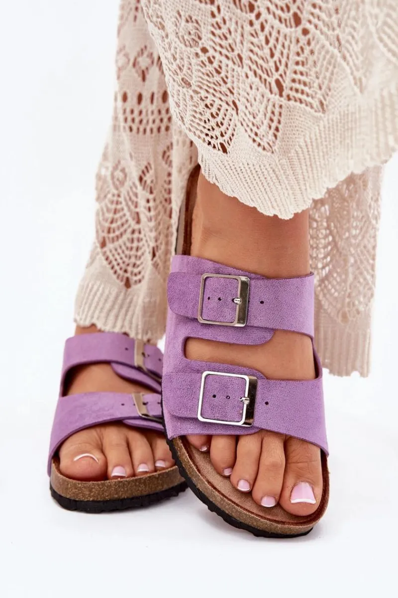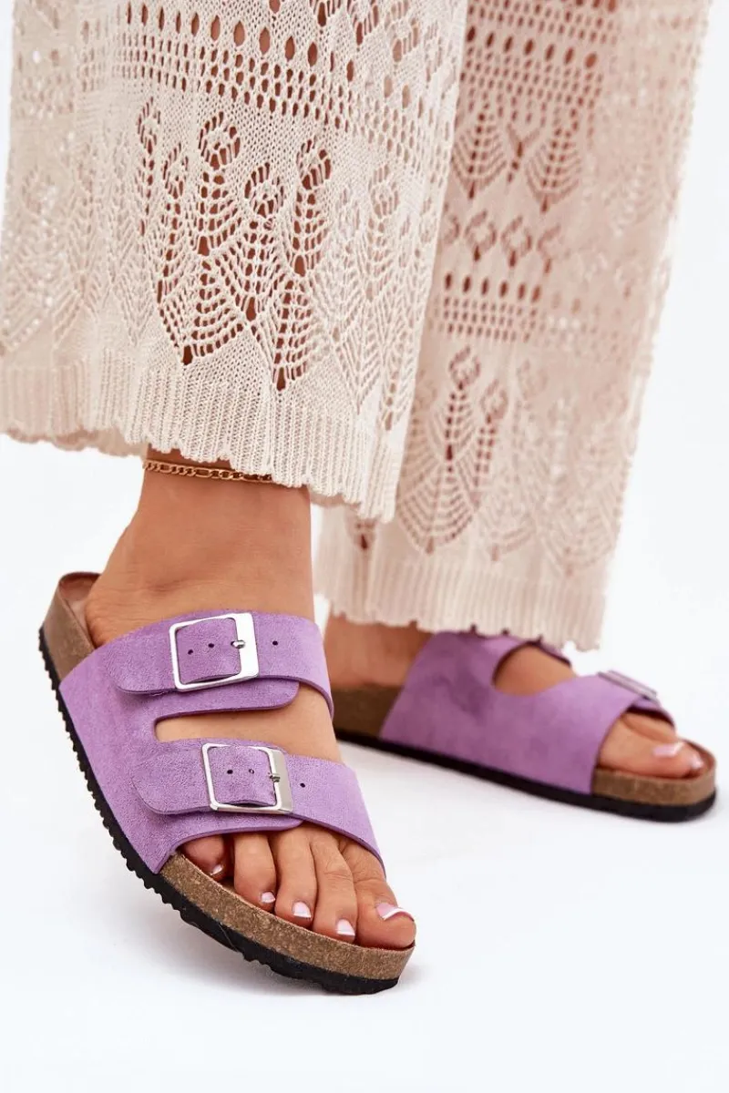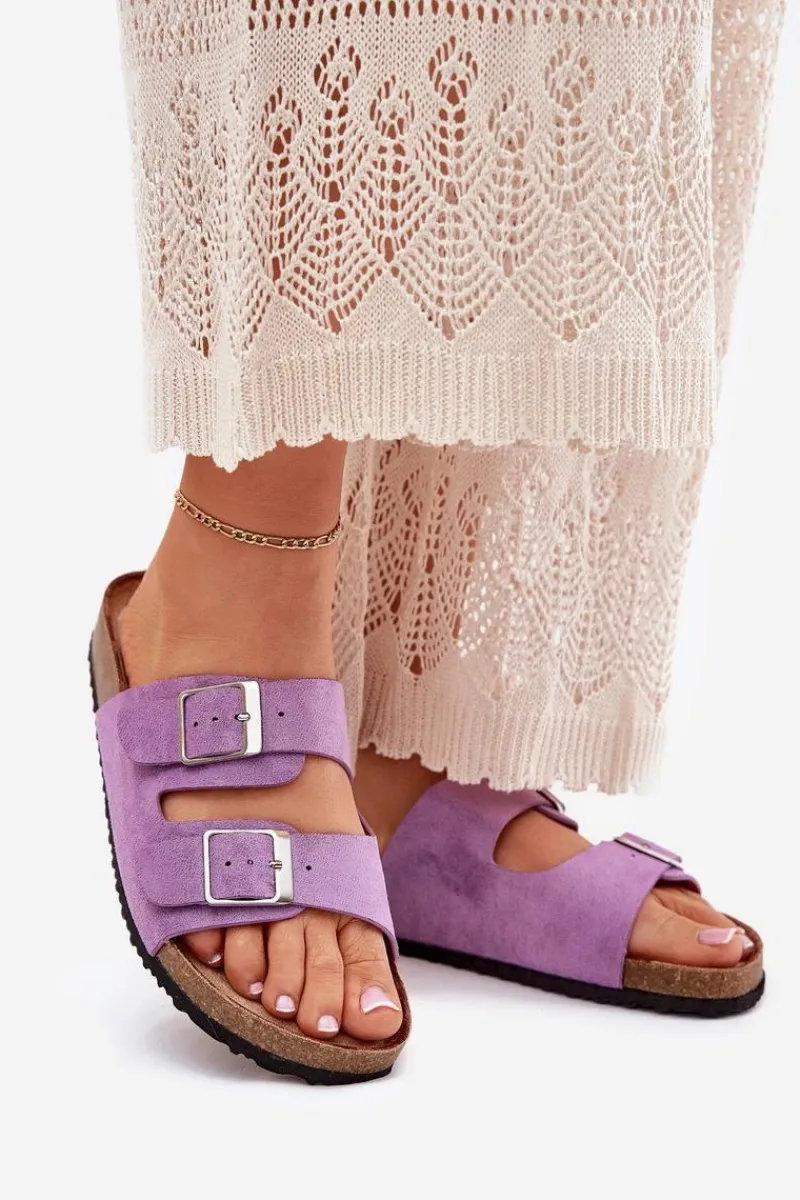 Klapki damskie z eko zamszu to połączenie stylu i wygody na co dzień. Wyposażone w dwa regulowane paski z klamrami, które umożliwiają idealne dopasowanie do stopy. Profilowana wkładka zapewnia komfort, a korkowa platforma dodaje lekkości i stabilności. Doskonałe na codzienne stylizacje, łączą funkcjonalność z modnym wyglądem. Przy wyborze rozmiaru prosimy sugerować się tabelą rozmiarów.