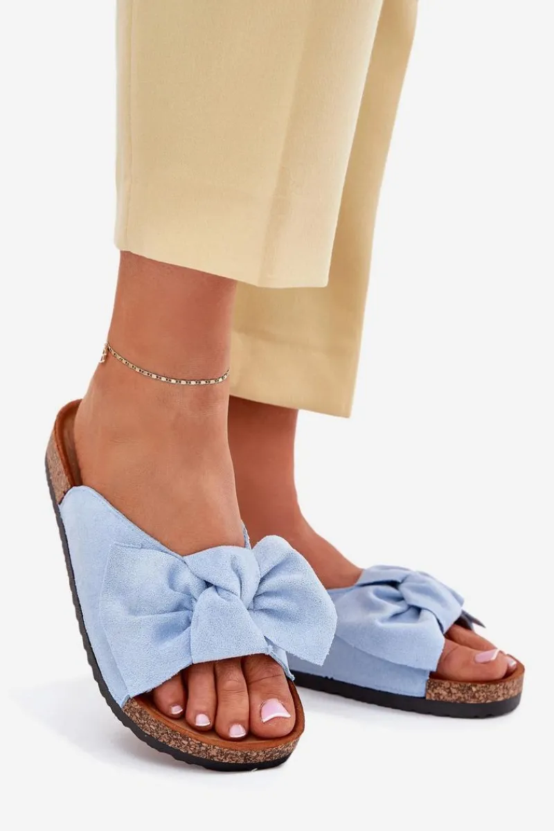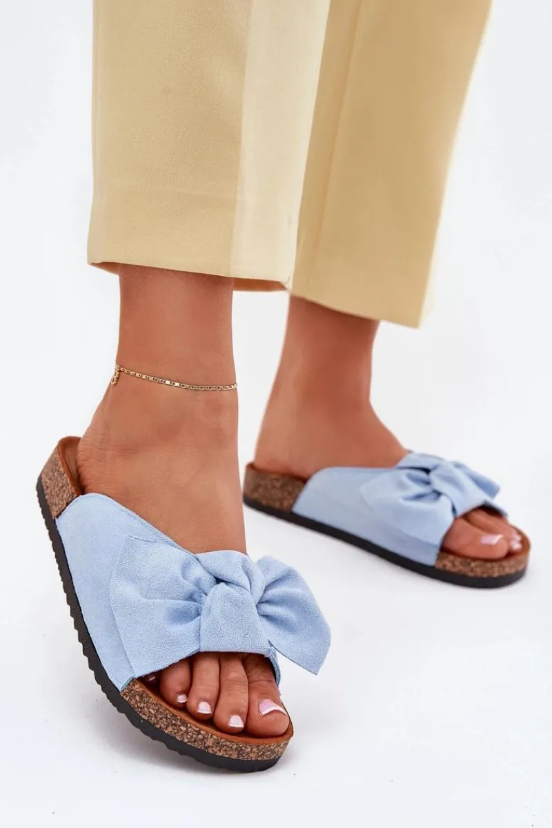 Klapki Korkowe|Klapki Na Platformie>Boto Klapki Damskie Na Korkowej Podeszwie Kokardką e Seressa Niebieski