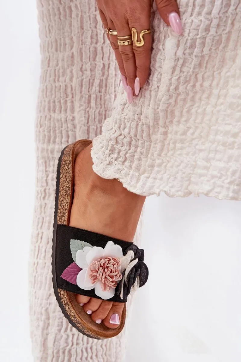 Klapki damskie na korkowej platformie to doskonały wybór na upalne dni. Posiadają wygodną, profilowaną wkładkę, która zapewnia komfort podczas chodzenia. Z przodu na pasku znajdują się urocze ozdobne kwiatuszki, które nadają im lekko kobiecy i letni charakter. Korkowa platforma dodaje lekkości oraz stabilności, sprawiając, że klapki te są idealne na długie, ciepłe dni spędzone na świeżym powietrzu. Stylowe i komfortowe – połączenie, które musisz mieć! Przy wyborze rozmiaru prosimy sugerować się tabelą rozmiarów.