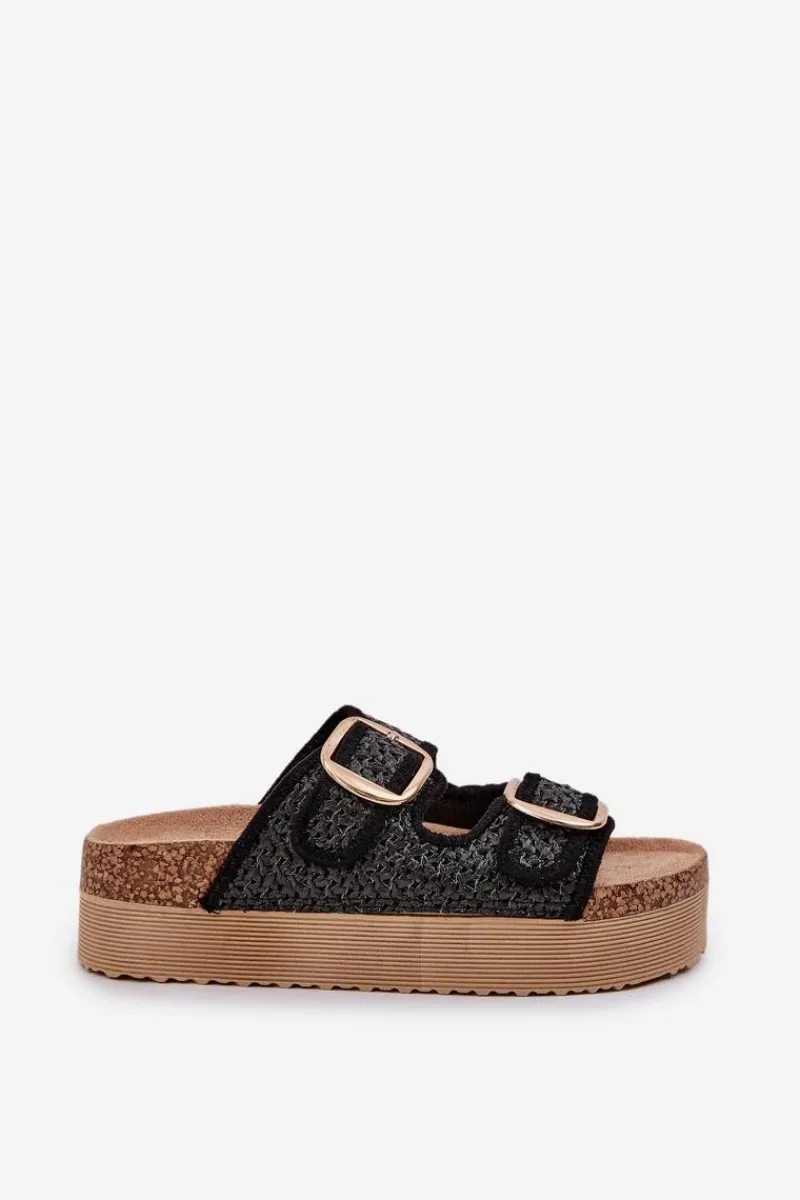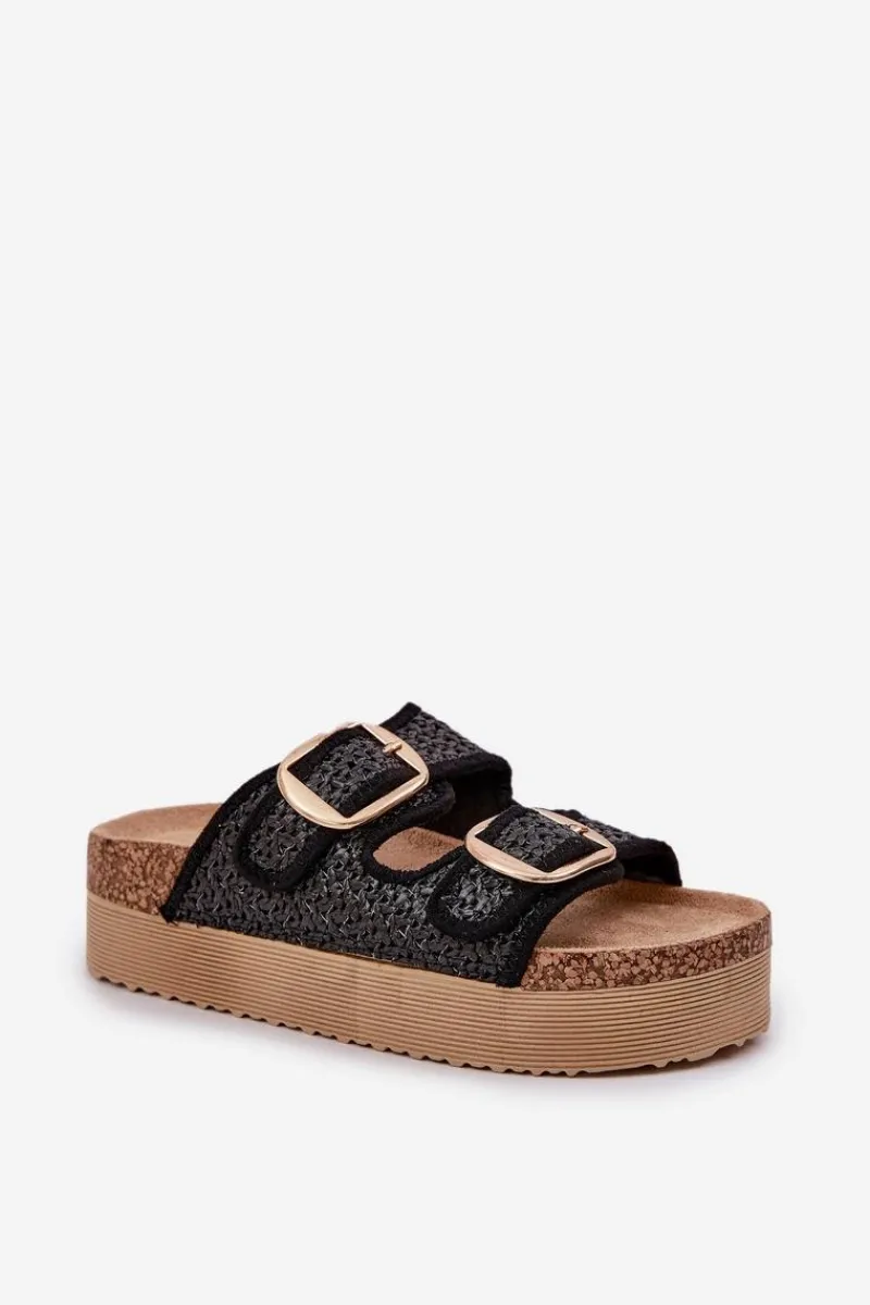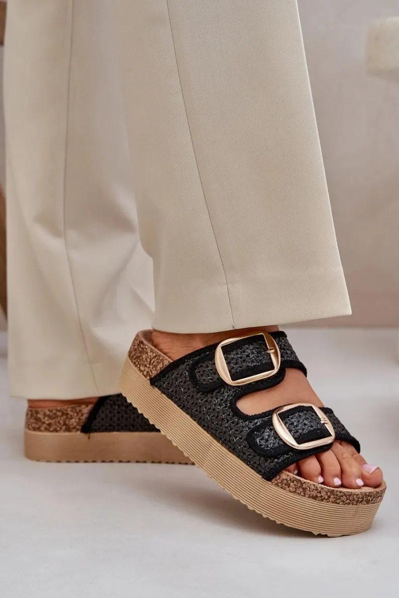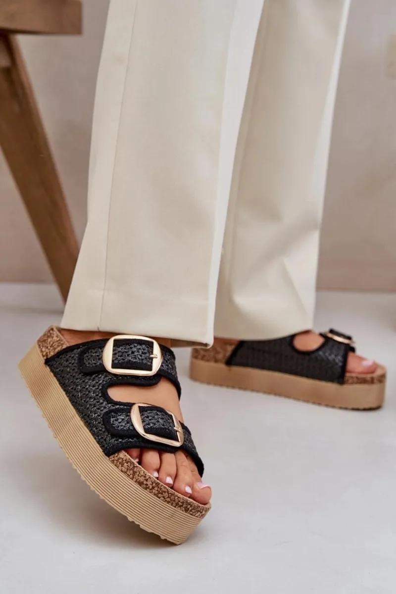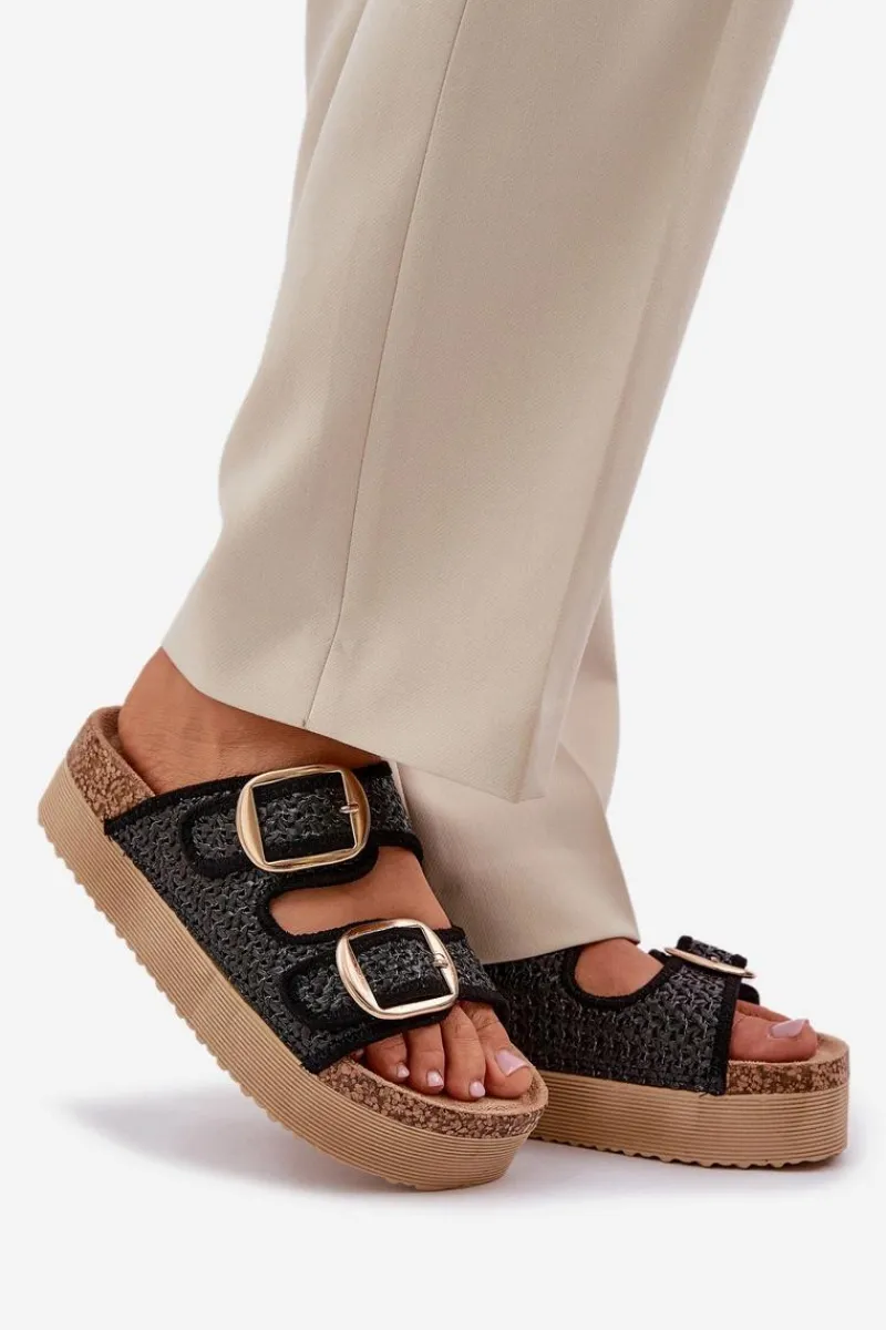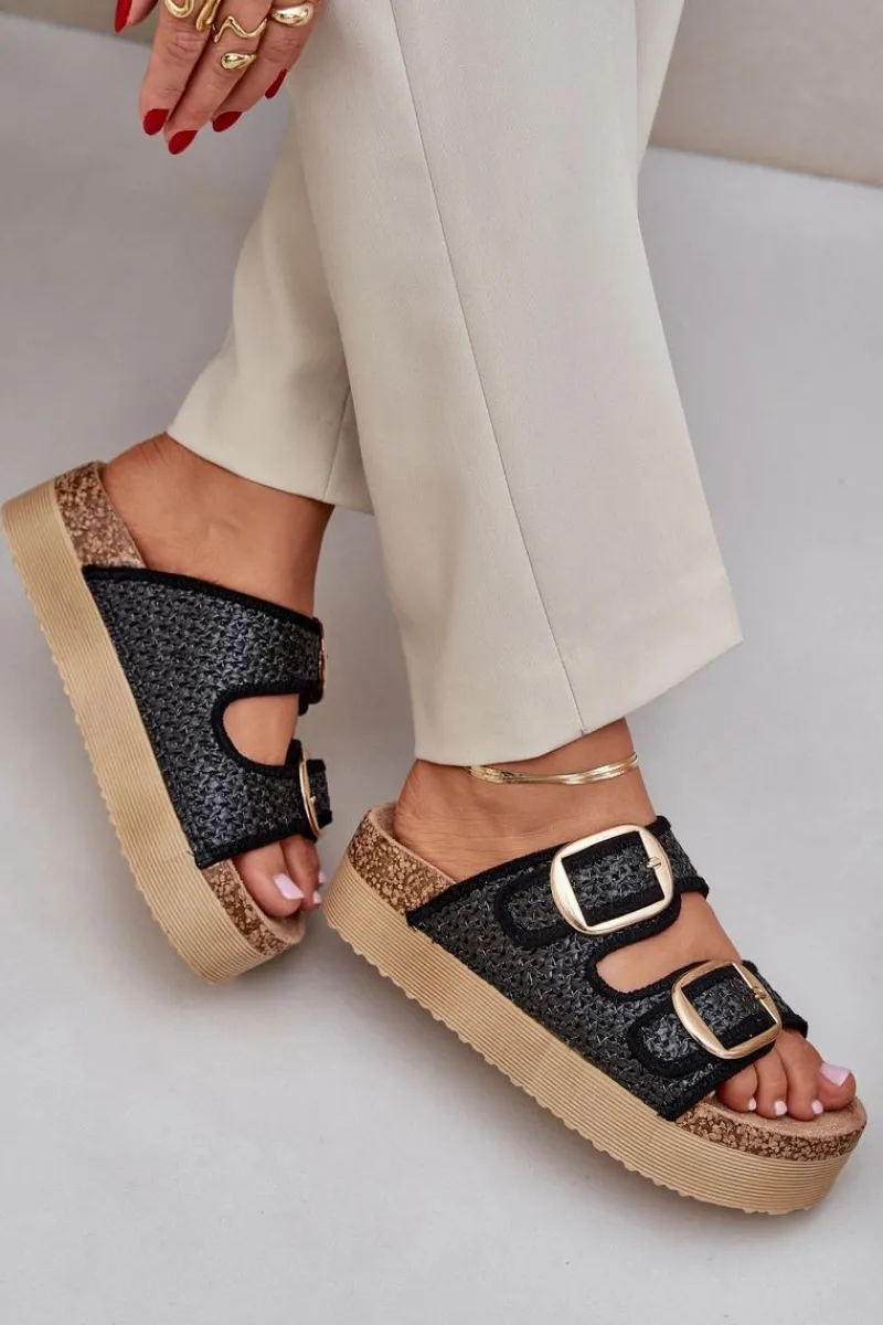 Klapki na masywnej platformie to doskonały wybór na letnie dni. Paski z klamrami umożliwiają idealne dopasowanie do stopy. Profilowana wkładka zapewnia komfort przez cały dzień, a solidna platforma dodaje lekkości i stabilności. Te klapki będą świetnym uzupełnieniem wakacyjnych stylizacji. Przy wyborze rozmiaru rosimy sugerować się tabelą rozmiarów.