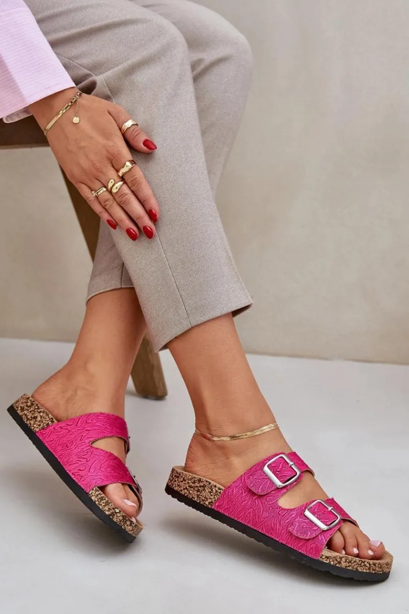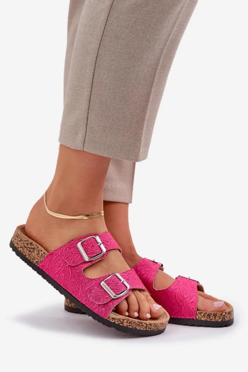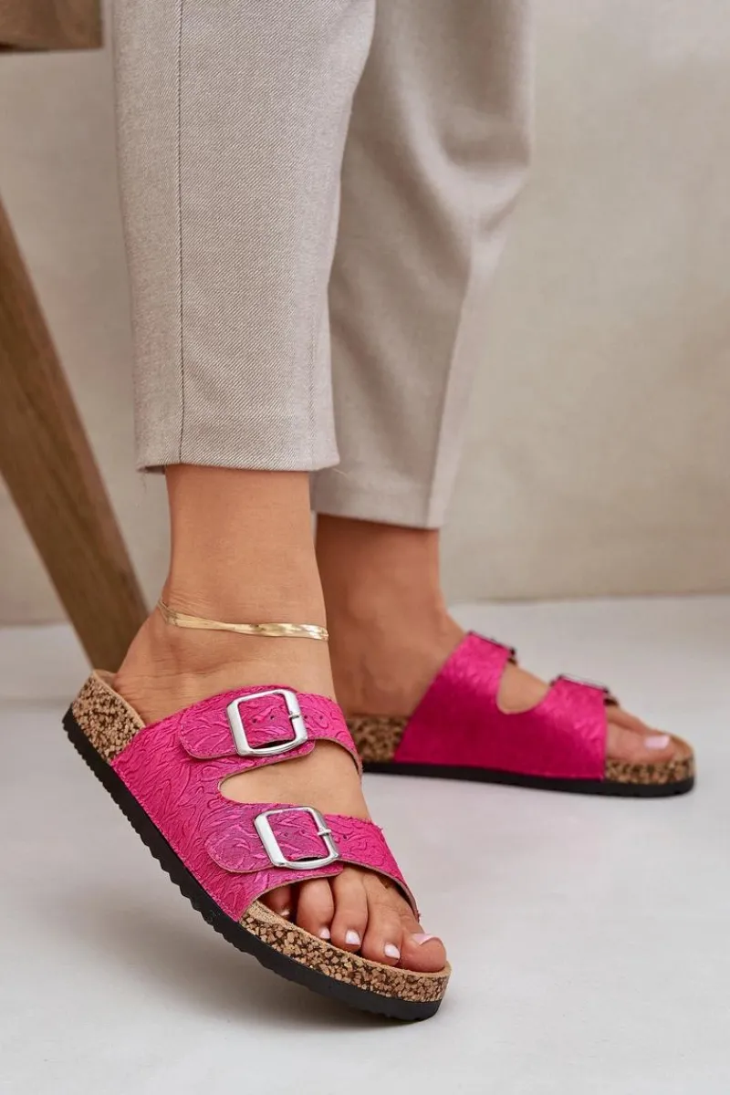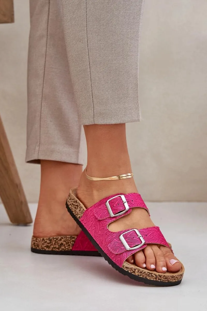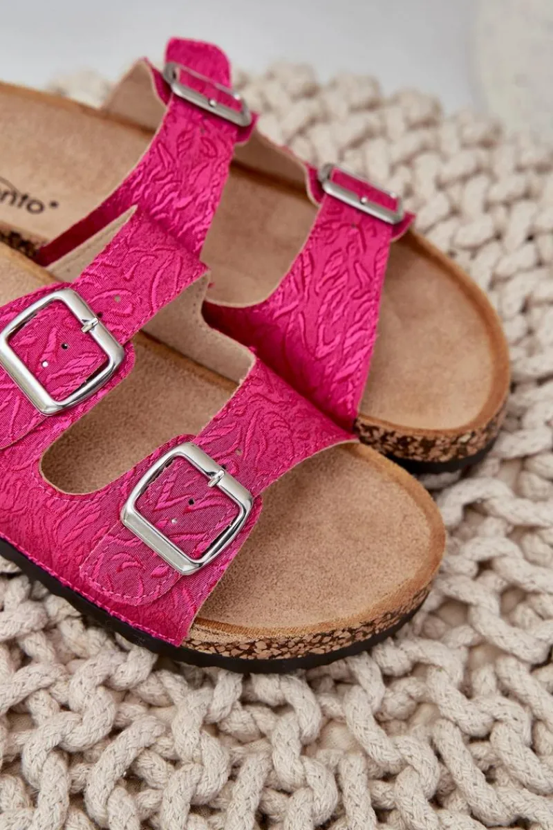 Klapki Korkowe|Klapki Na Platformie>Boto Materiałowe Klapki Na Korkowej Podeszwie Z Klamrami Fuksja Atera Różowy