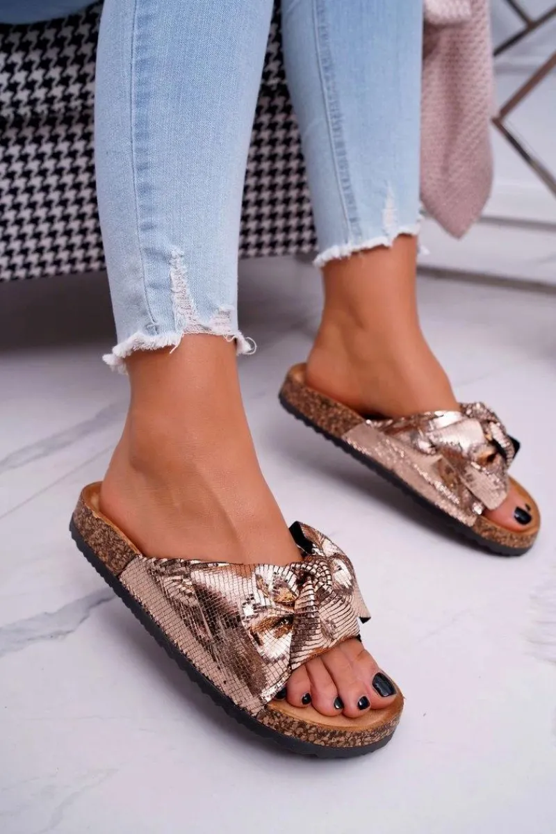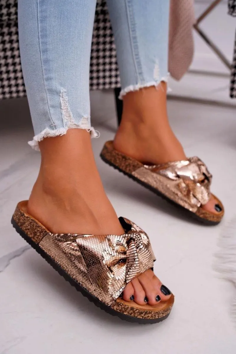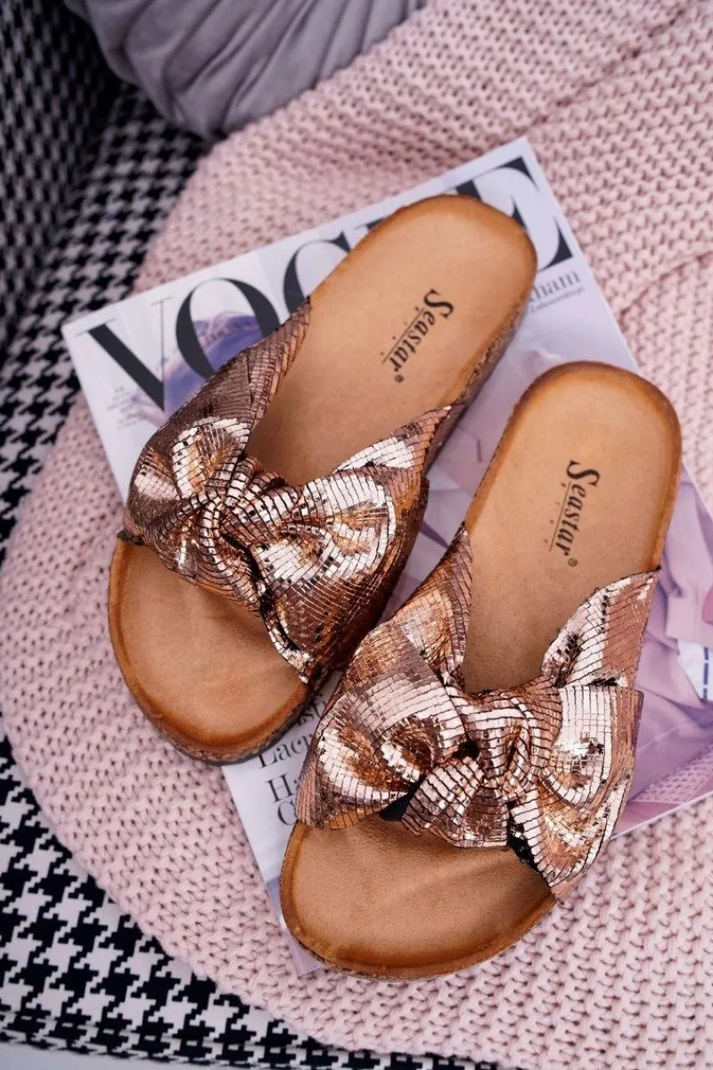 Hot Boto Damskie Klapki Z Kokardą I Cyrkoniami Różowe Jolene