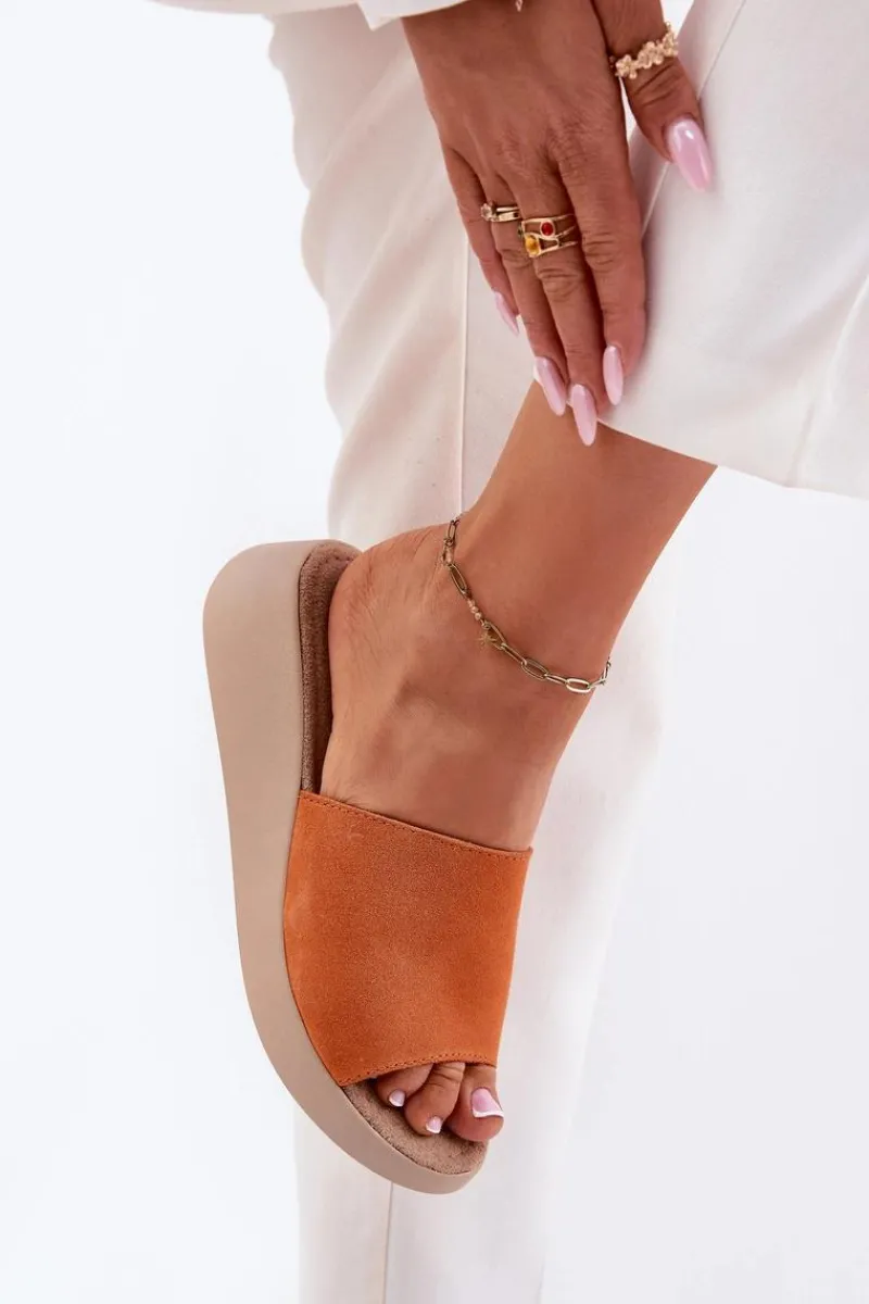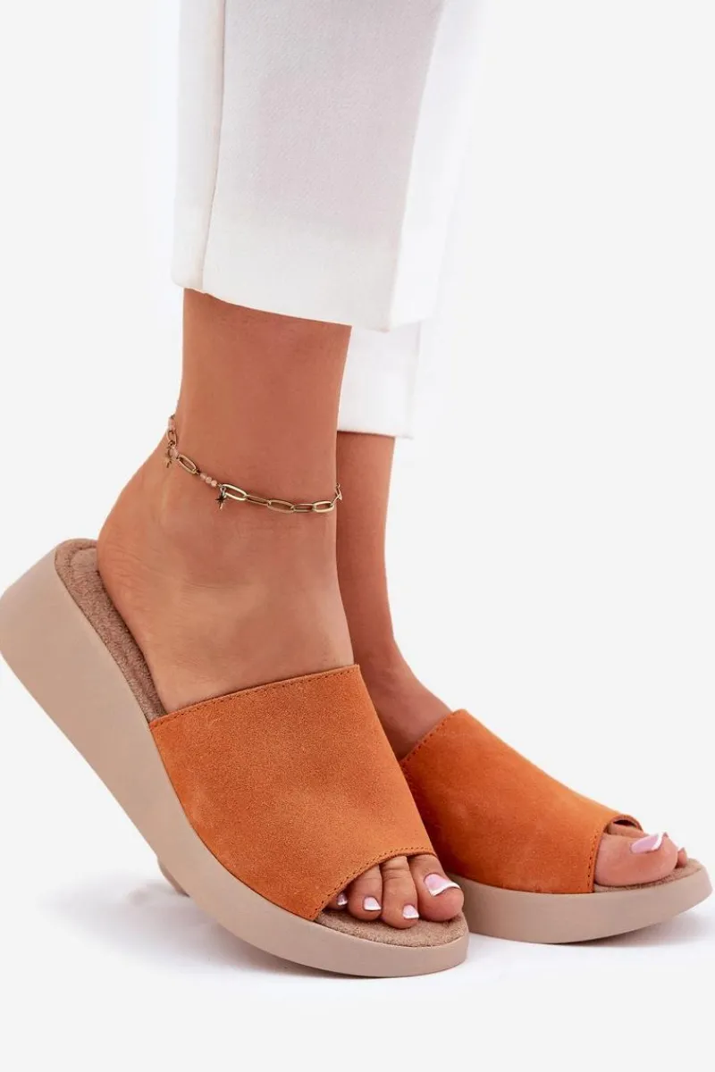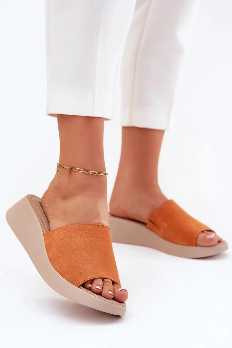 Klapki Na Koturnie|Klapki Damskie Klasyczne>Panto Fino Zamszowe Klapki Damskie Na Koturnie RR267039 Pomarańczowe
