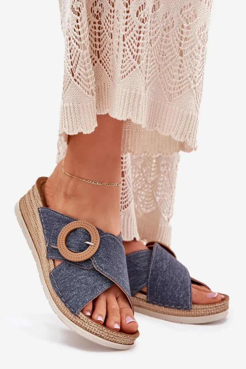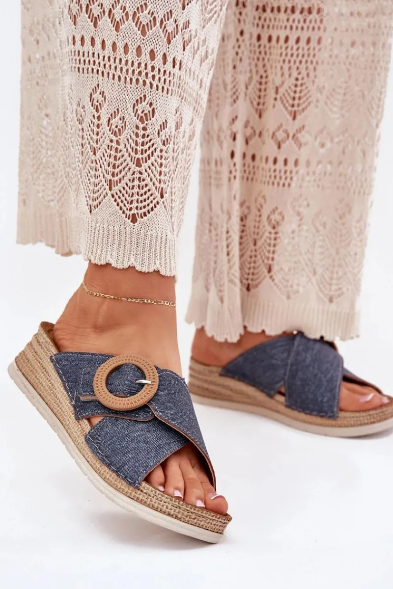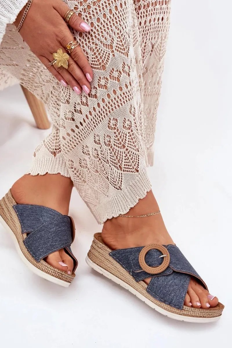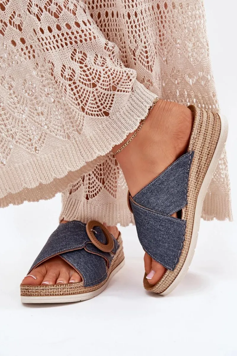Klapki damskie od marki Inblu, osadzone na koturnie, to doskonały wybór na ciepłe dni. Wkładka z naturalnego zamszu zapewnia komfort i wygodę, a ozdobna klamra dodaje im eleganckiego charakteru. Lekkie i wygodne, stanowią idealne uzupełnienie codziennych stylizacji, łącząc funkcjonalność z modnym wyglądem. Przy wyborze rozmiaru prosimy sugerować się tabelą rozmiarów.