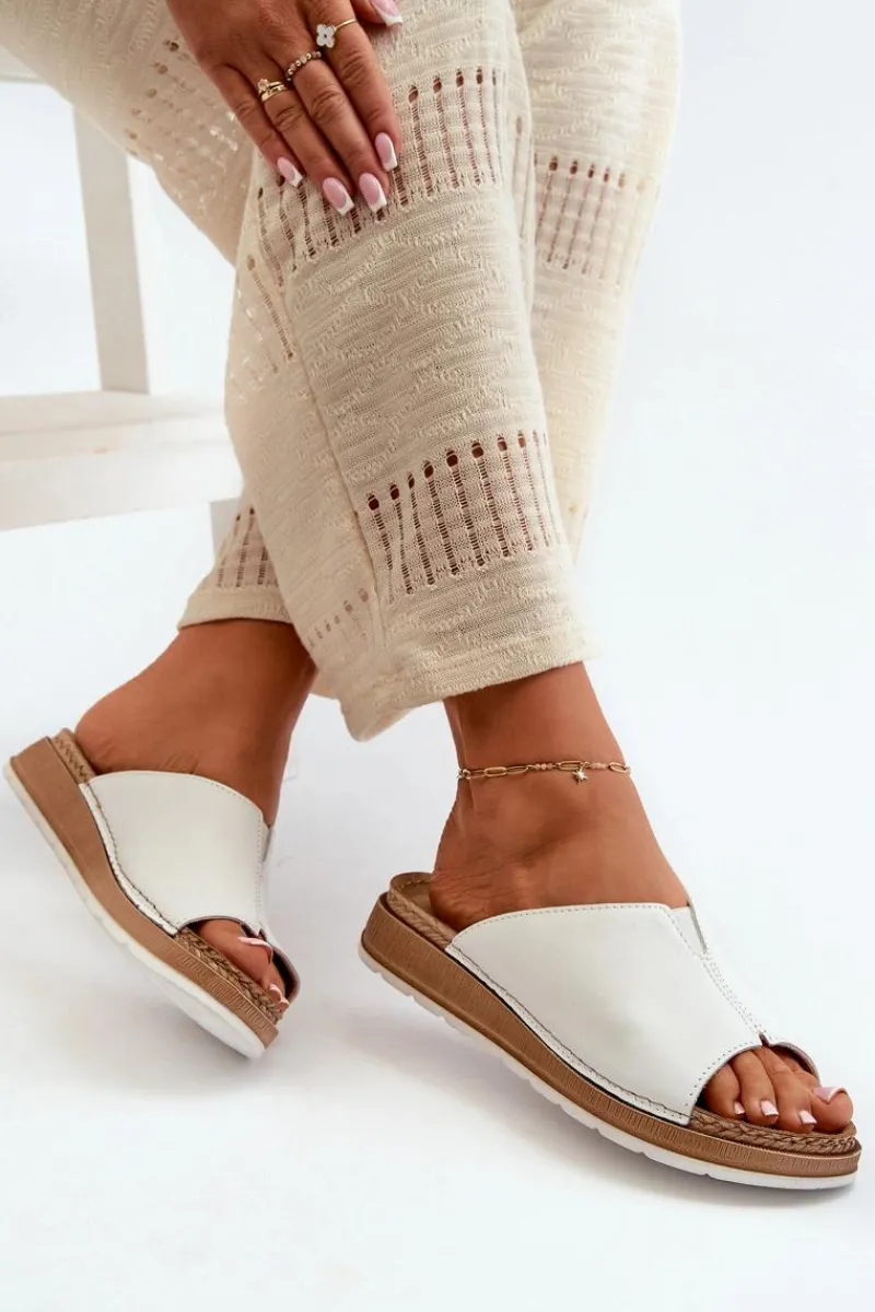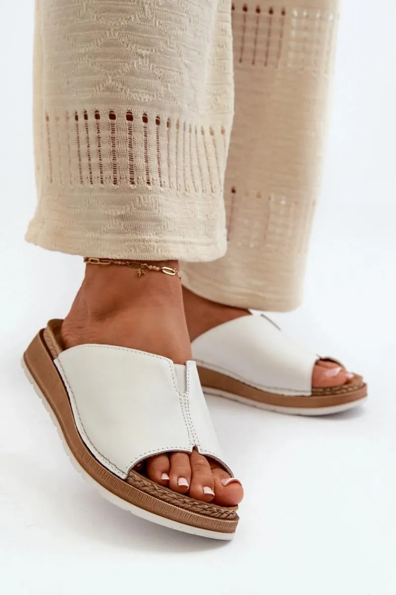 Klapki Na Koturnie|Klapki Na Obcasie>INBLU Wygodne Klapki Damskie Z Eko Skóry GS0003I1 Białe