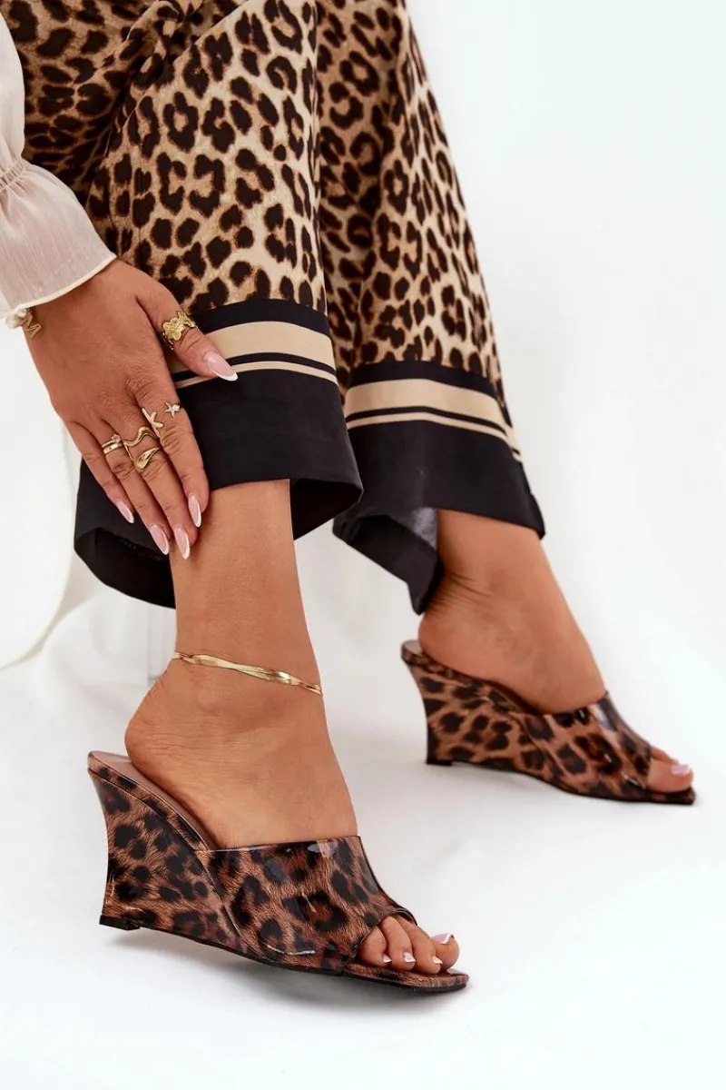 Stylowe klapki damskie wykonane z eko skóry. Osadzone na zwężanym koturnie. Idealne na ciepłe dni, te klapki doskonale komponują się zarówno z sukienkami, jak i spódnicami, dodając każdej stylizacji modnego wyglądu. Przy wyborze rozmiaru prosimy sugerować się tabelą rozmiarów.