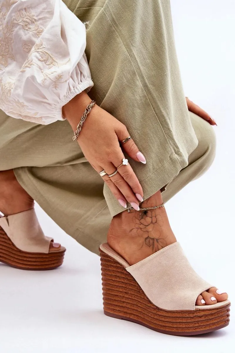 Klapki Na Koturnie|Klapki Na Platformie>Boto Lekkie Klapki Na Masywnej Platformie Beżowe Good Vibe