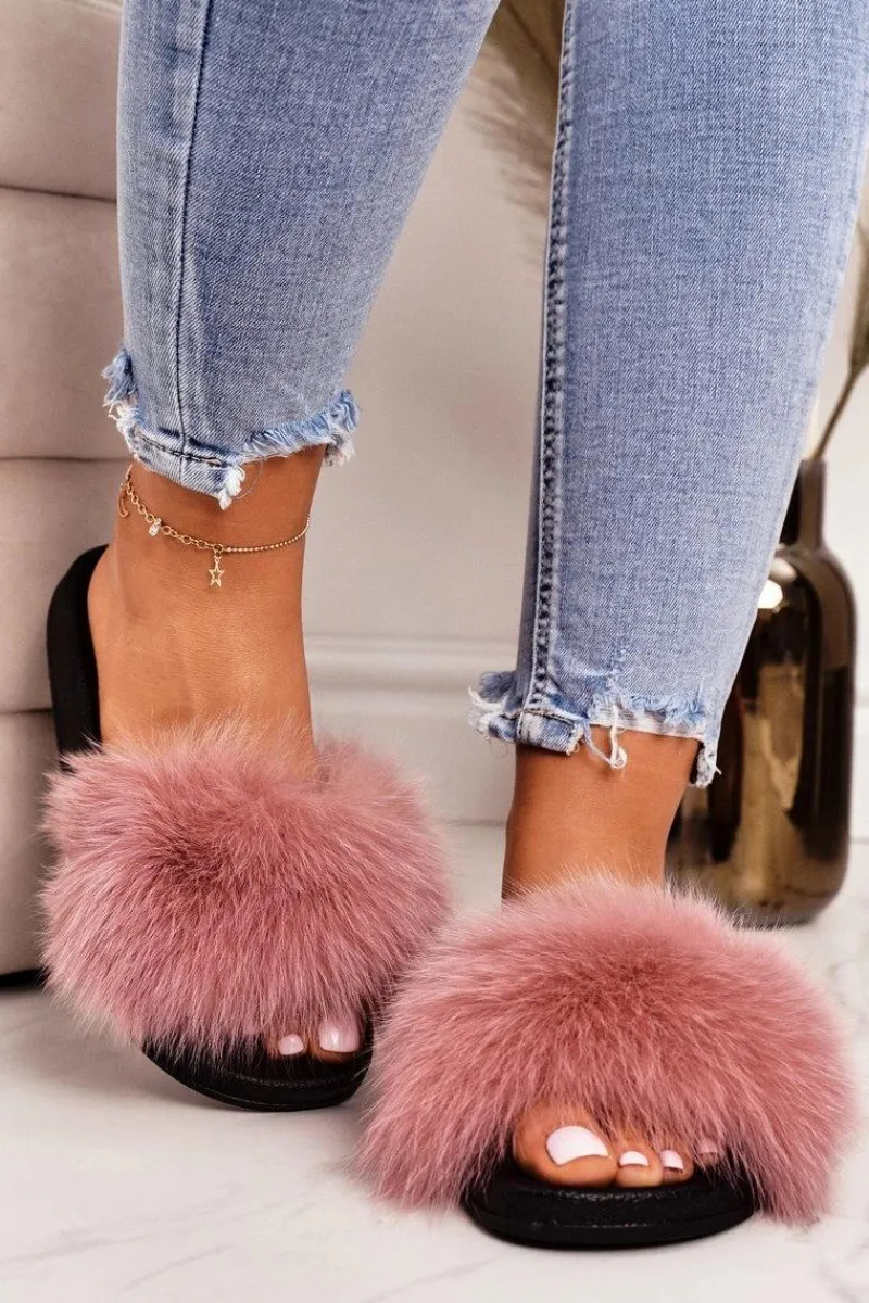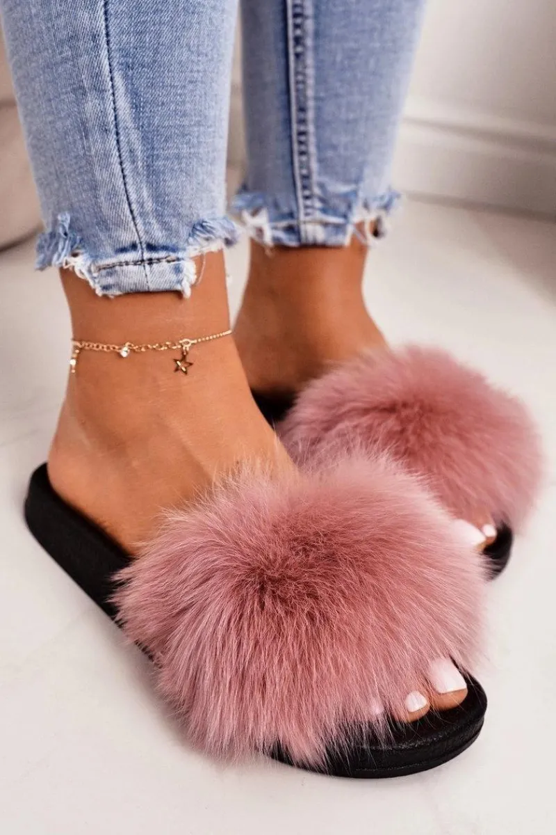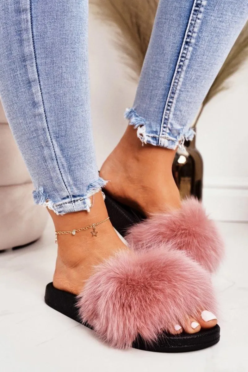 Wygodne klapki z naturalnym futerkiem. Gumowa, delikatnie profilowana podeszwa oraz miękka cholewka zapewnią komfort. Klapki dostępne są w wielu pięknych kolorach.Przy wyborze rozmiaru prosimy sugerować się tabelą rozmiarów.