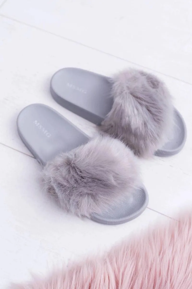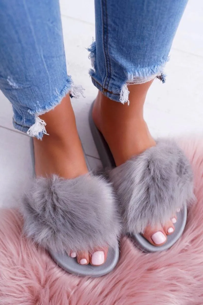 Klapki Z Futerkiem|Klapki Damskie Klasyczne>Boto Klapki Damskie Z Futerkiem Szare Fur