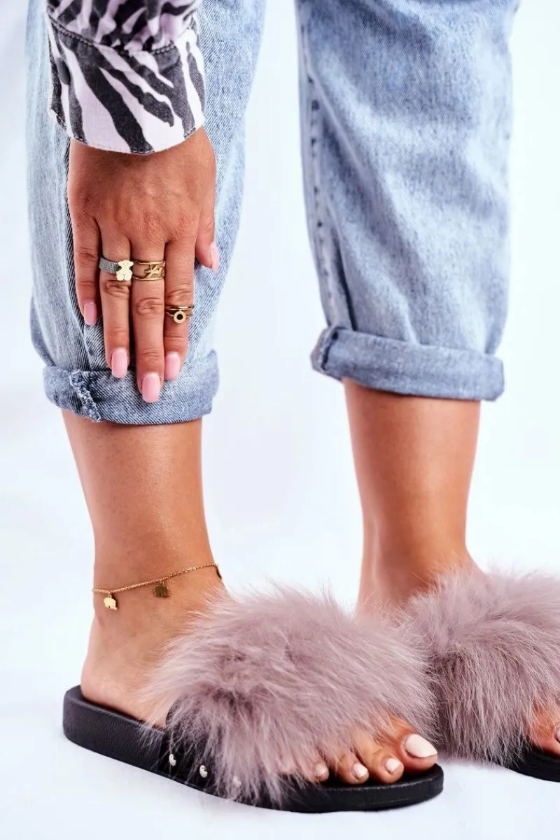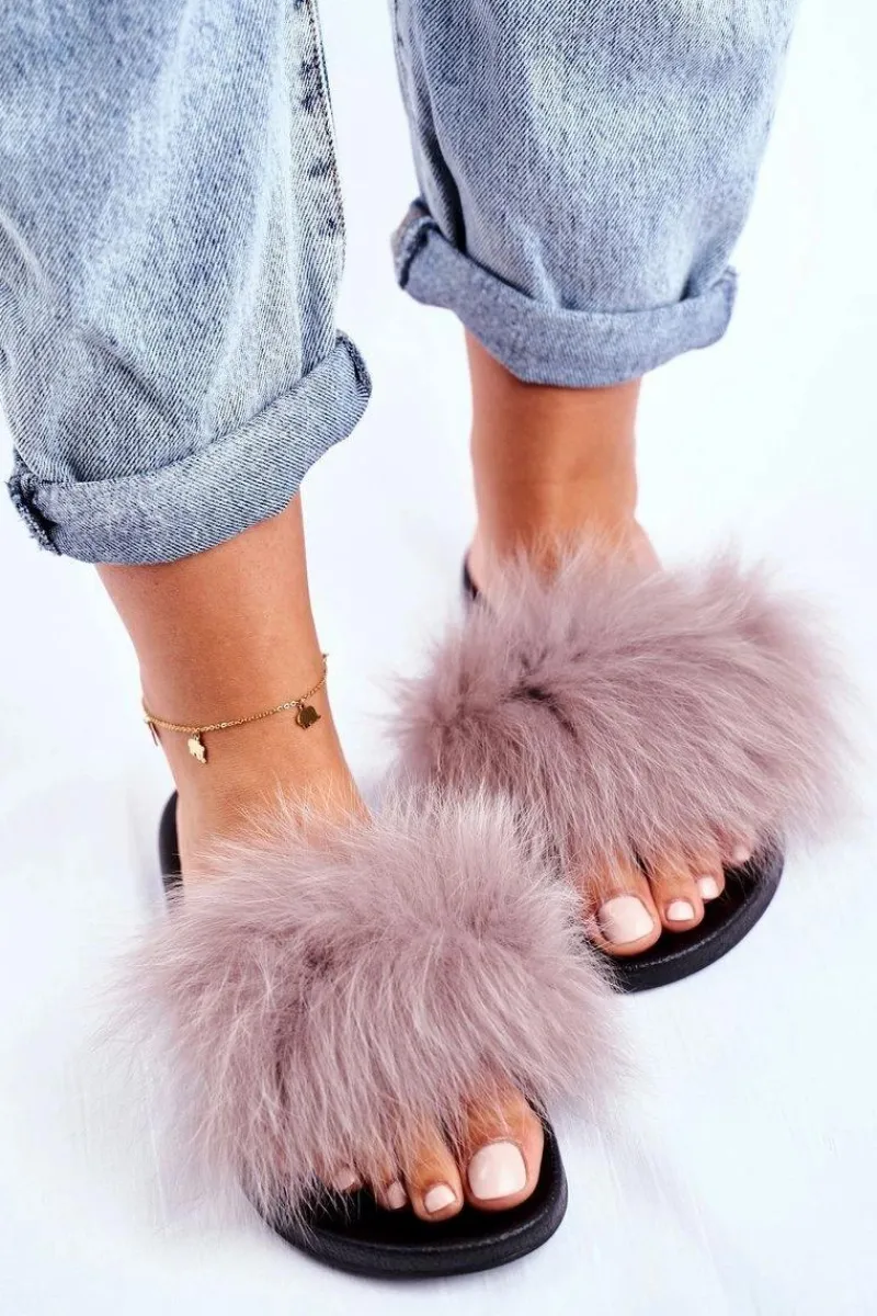 Klapki Z Futerkiem|Klapki Damskie Klasyczne>Boto Klapki Damskie z Naturalnym Futerkiem Jasno Szare Bushido