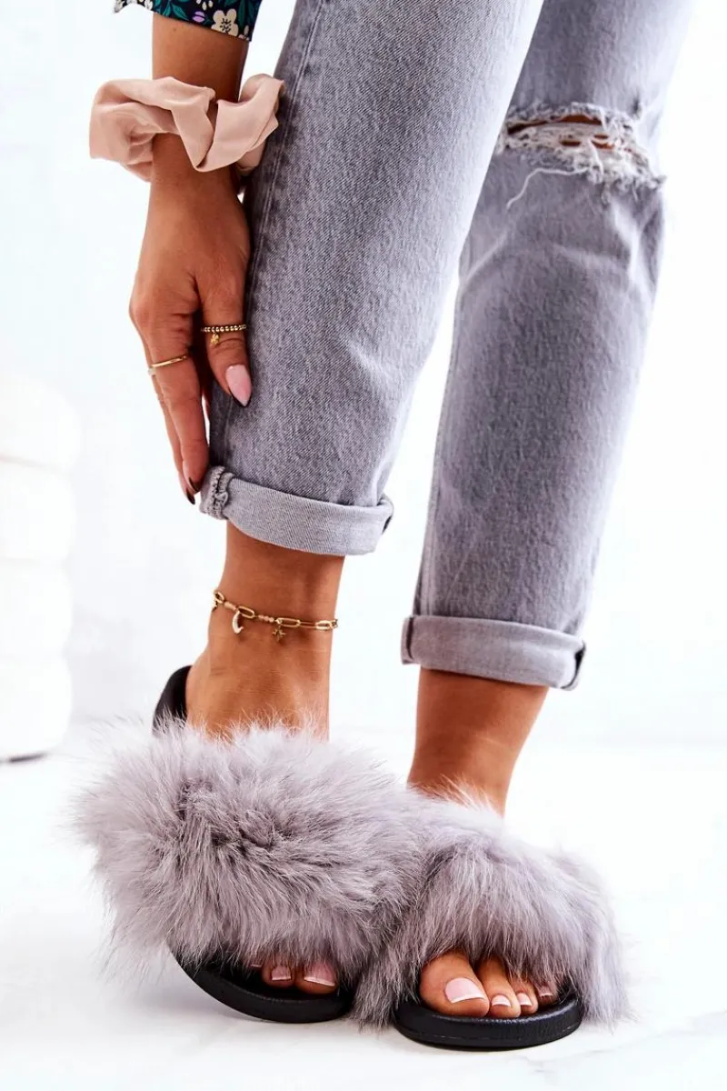 Klapki damskie z miłym w dotyku, naturalnym futerkiem. Podeszwa wykonana jest z gumowego, lekkiego tworzywa. Delikatnie profilowana wkładka zadba o Twój komfort. Idealne dla każdej kobiety ceniącej sobie wygodę. Koniecznie musisz je mieć! Nie przegap takiej okazji i kup już dziś!Przy wyborze rozmiaru prosimy kierować się tabelą rozmiarów