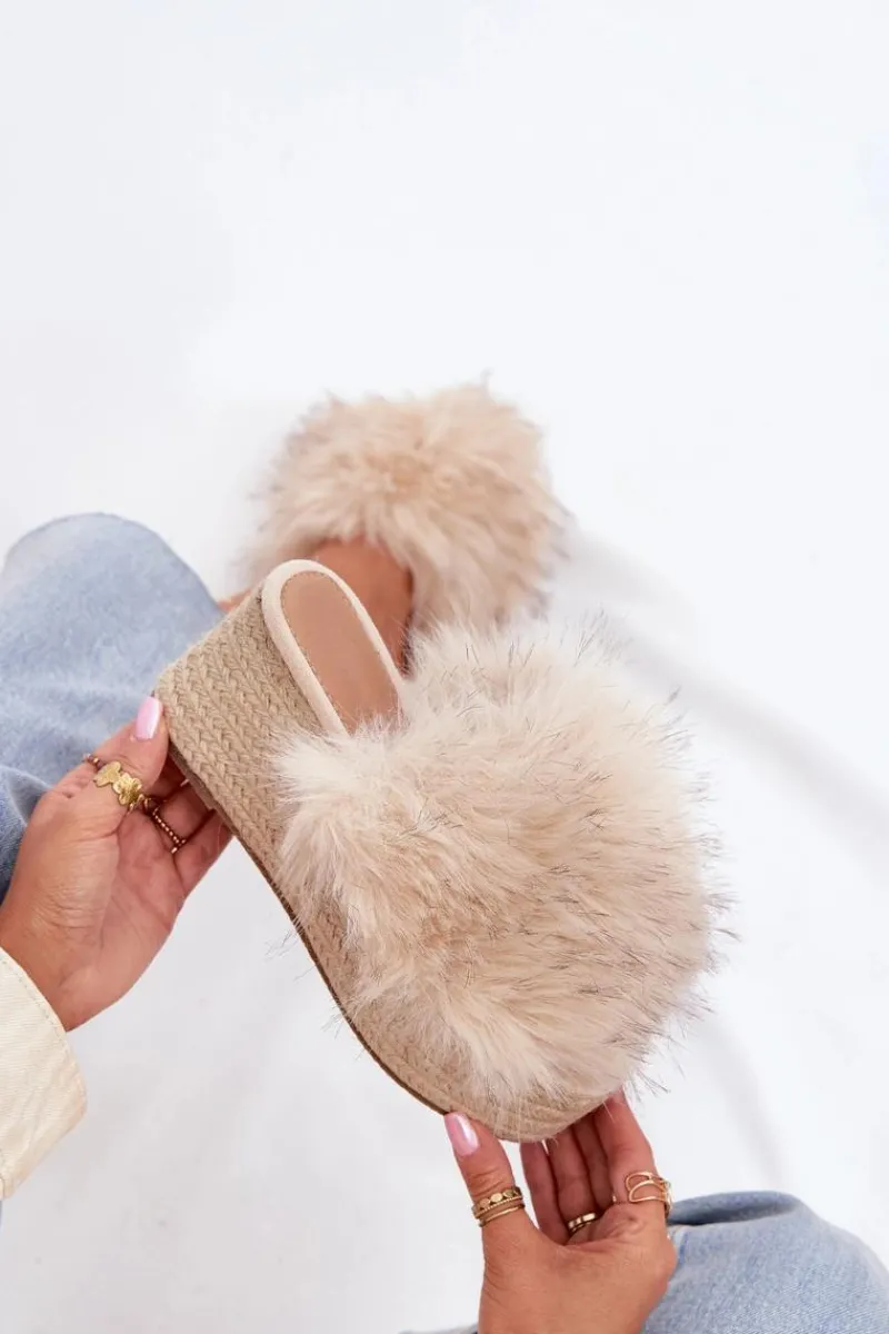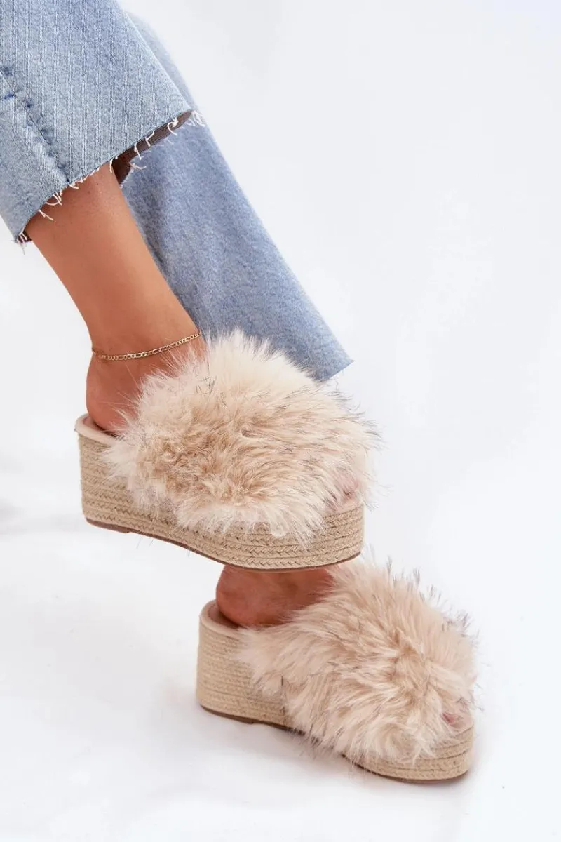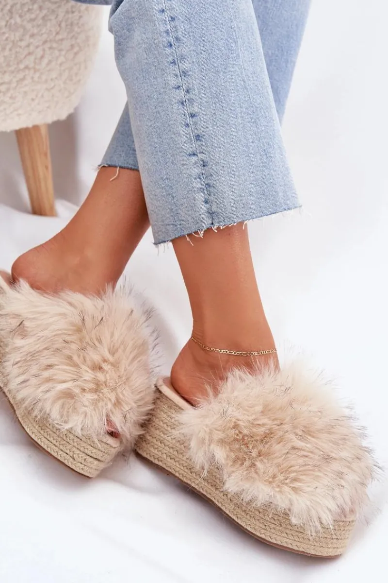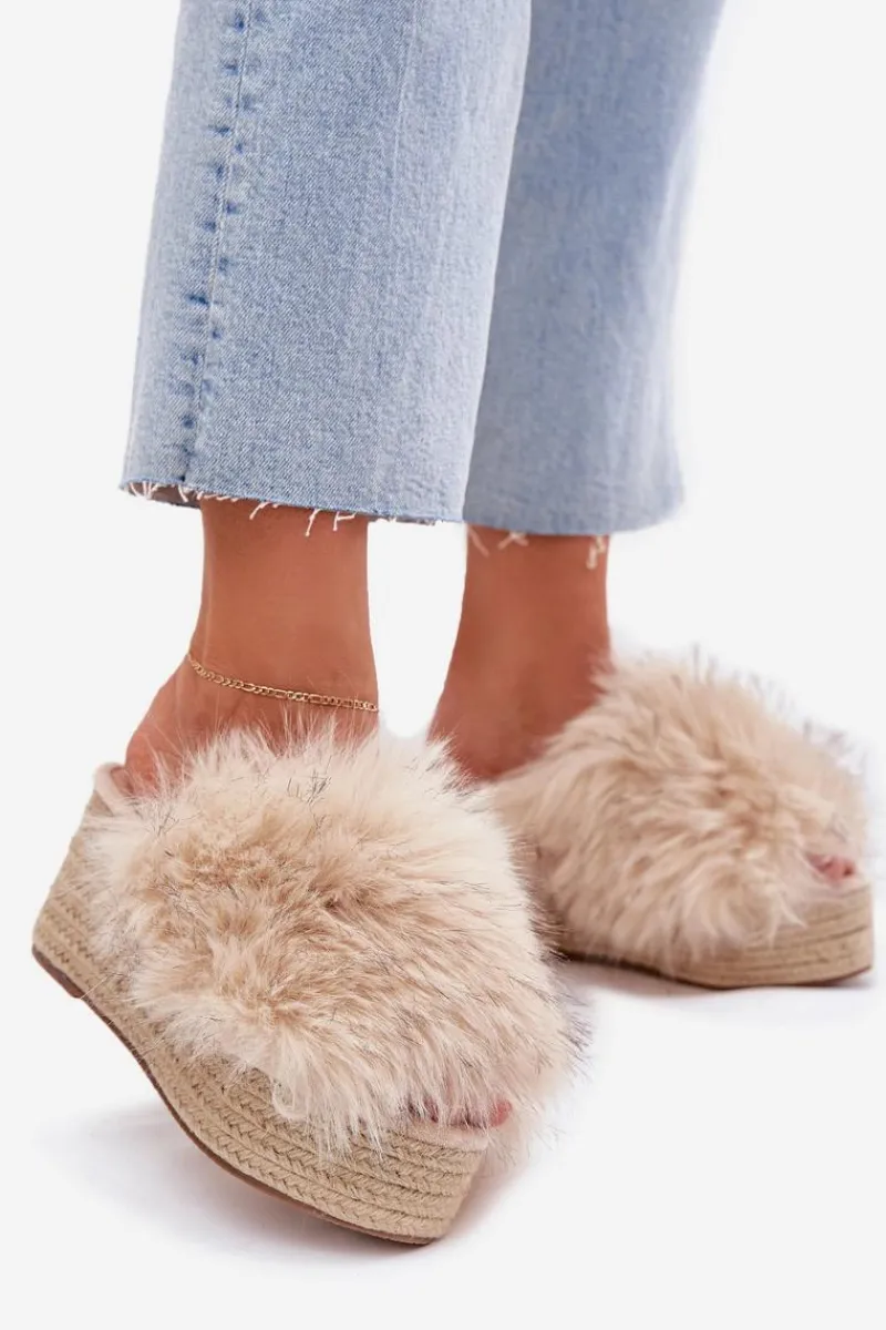 Klapki damskie z futerkiem to modny wybór na letnie dni. Osadzone na koturnie i platformie z plecionką, dodają lekkości i wakacyjnego uroku, idealnie komponując się z letnimi sukienkami, spódnicami czy szortami. Przy wyborze rozmiaru prosimy sugerować się tabelą rozmiarów.