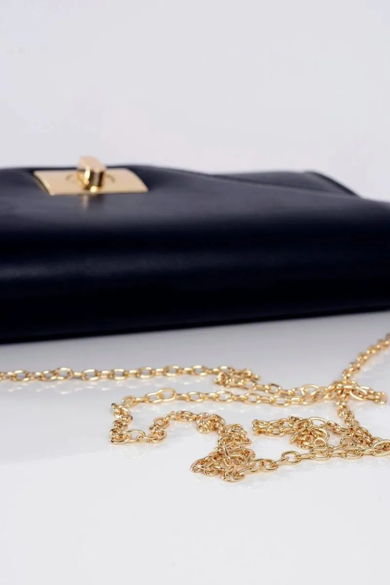 Kopertówki>Boto Damska Torebka Czarna Kopertówka Złoty Łańcuszek