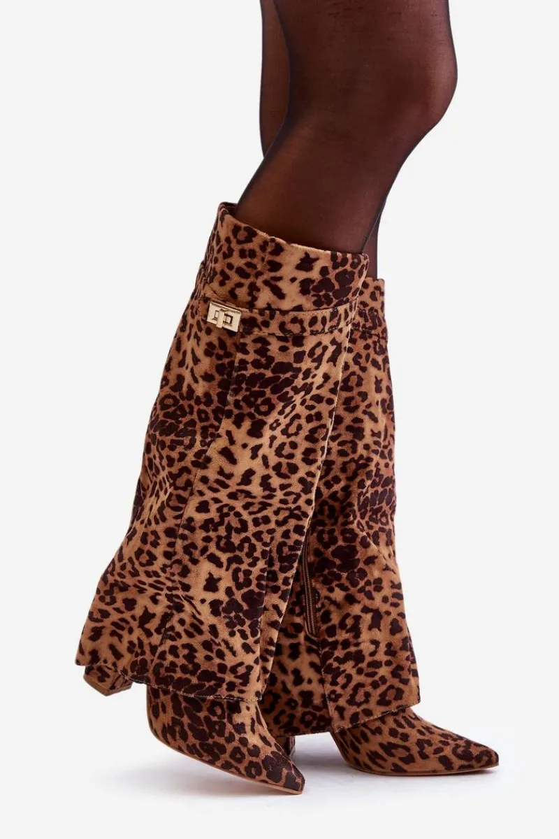 Stylowe kozaki damskie wykonane z eko zamszu. Model ten posiada cholewkę zachodzącą na obcas, co wyróżnia to obuwie na tle innych kozaków. Zapinane na suwak. Noski w szpic optycznie wysmuklą nogi. Idealne do sukienek czy spódnic! Przy wyborze rozmiaru prosimy sugerować się tabelą rozmiarów.