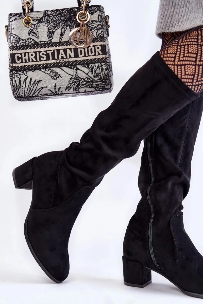 Klasyczne, damskie kozaki osadzone na niewysokim, stabilnym słupku świetnie sprawdzą się w przejściowym sezonie. Posiadają usztywnienie oraz ocieplenie w postaci delikatnego futerka na wysokości stopy. Cholewka wykonana z miłego w dotyku eko zamszu i zapinana na całej długości na zamek błyskawiczny. Miękka, ocieplana wkładka zapewni komfort podczas użytkowania. Przy wyborze rozmiaru prosimy sugerować się tabelą rozmiarów.