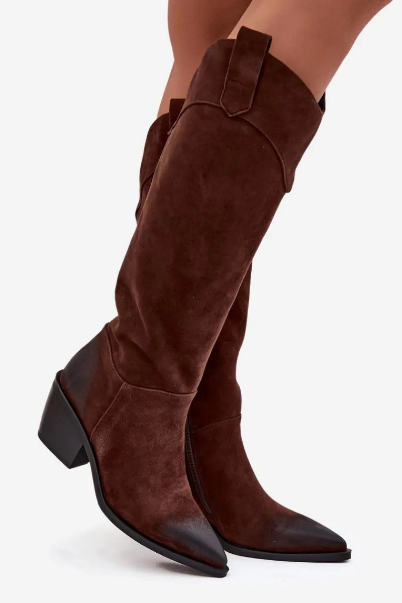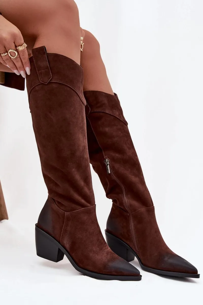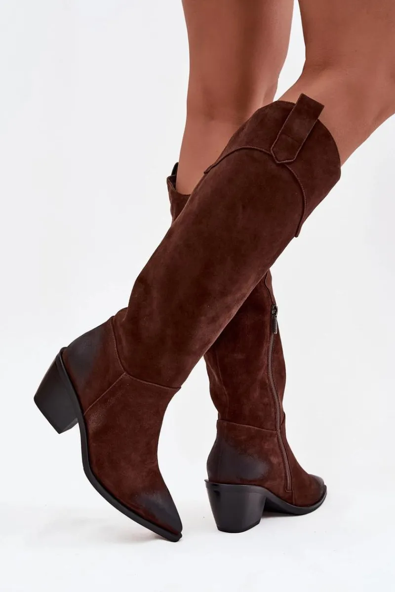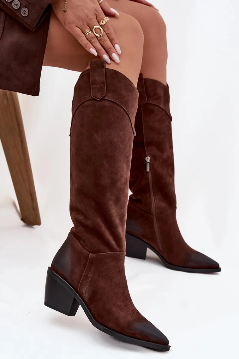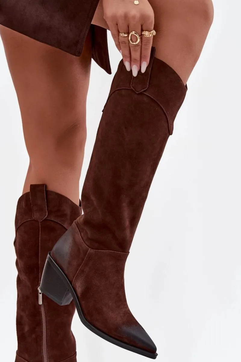 Kozaki damskie w stylu kowbojek od marki Artiker to propozycja dla kobiet, które cenią modny wygląd połączony z wygodą. Wykonane z naturalnego zamszu, prezentują się elegancko i ponadczasowo, a szpiczaste noski podkreślają ich kobiecy charakter oraz dodają sylwetce smukłości. Model wsuwany, dodatkowo posiada zamek, co gwarantuje łatwe zakładanie i zdejmowanie butów. Stabilny obcas w formie ściętego słupka zapewnia wygodę podczas noszenia, jednocześnie nawiązując do klasycznego kowbojskiego stylu. Wnętrze ocieplone miękkim materiałem sprawia, że kozaki świetnie sprawdzą się w chłodniejsze dni. To efektowny model, który doskonale uzupełni zarówno casualowe stylizacje z jeansami, jak i bardziej kobiece zestawy z sukienką czy spódnicą. Przy wyborze rozmiaru prosimy sugerować się tabelą rozmiarów.