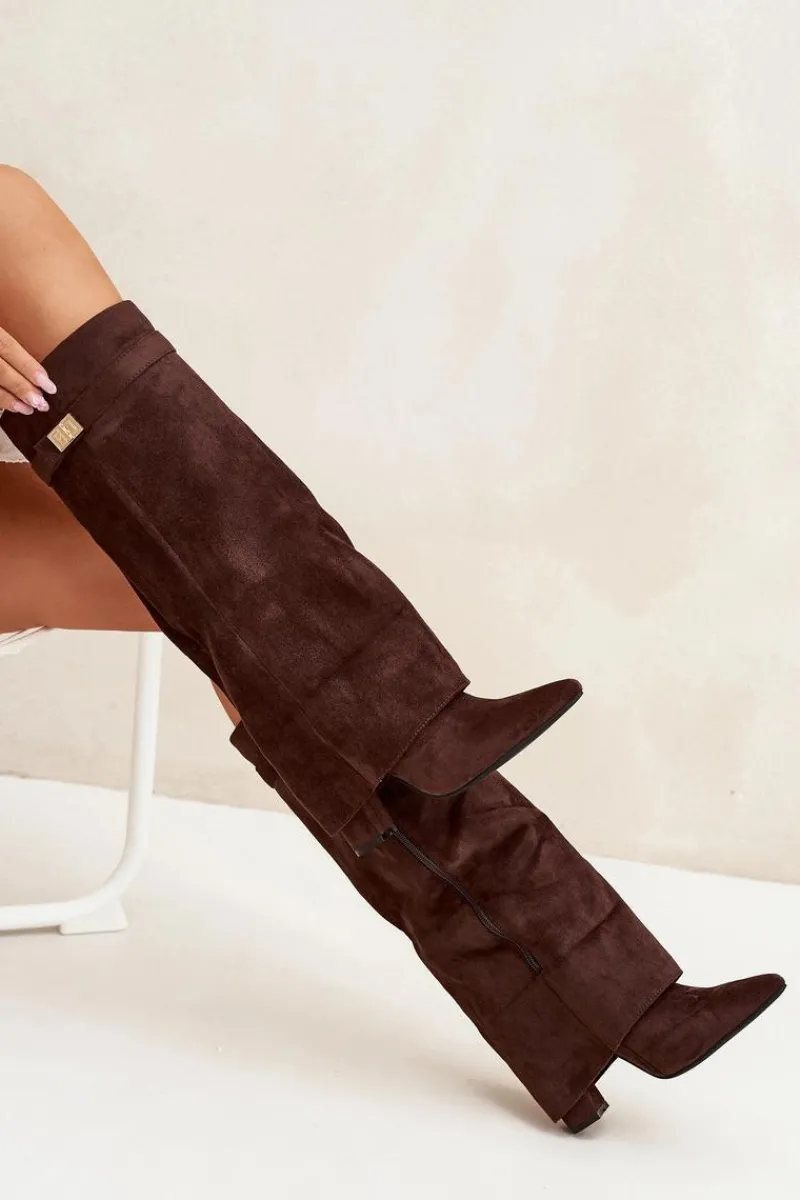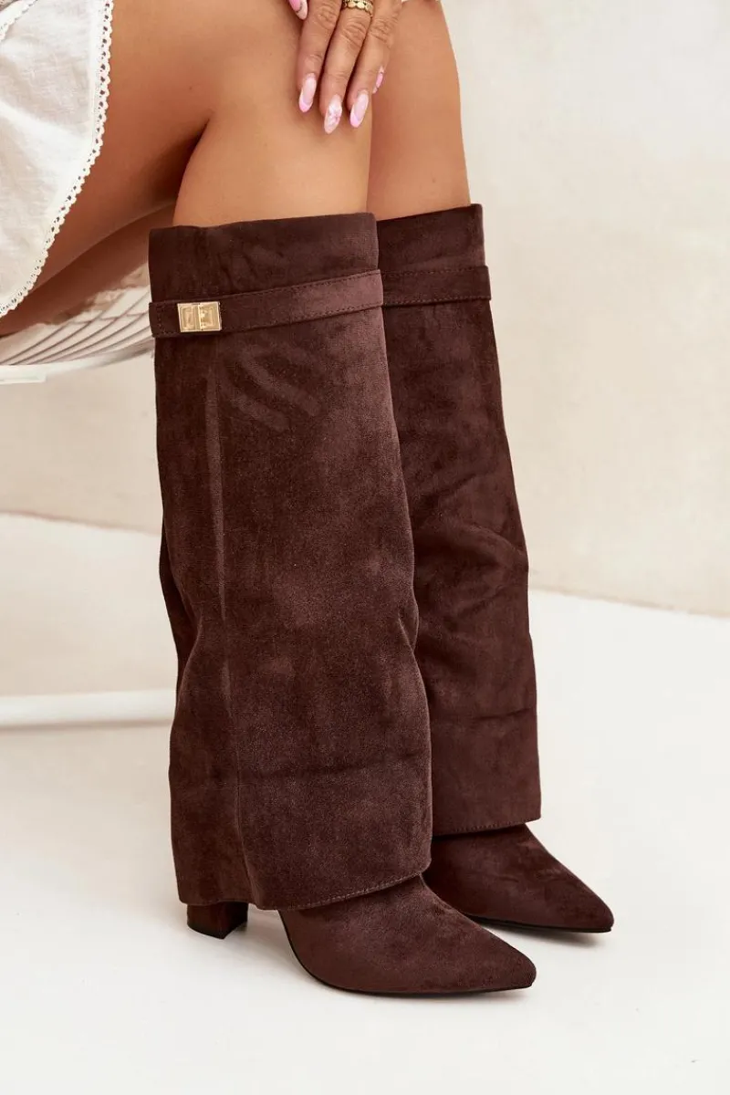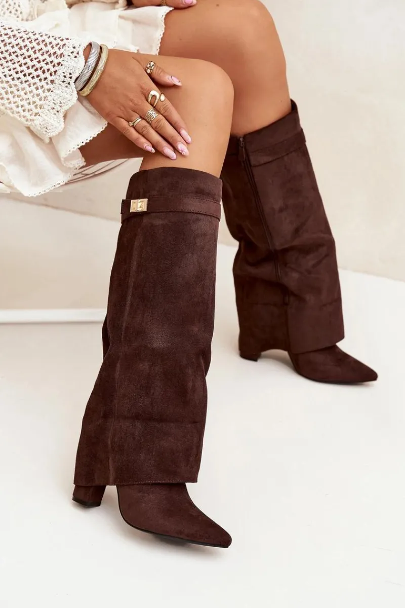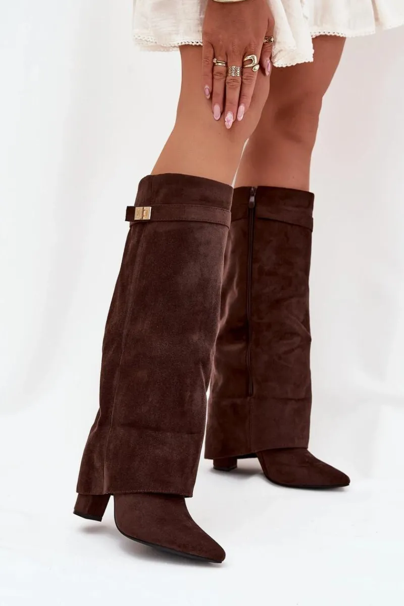 Postaw na wygodę, elegancję i ekologiczną jakość z kozakami Eko Zamszowymi z wywiniętą cholewką na słupku!