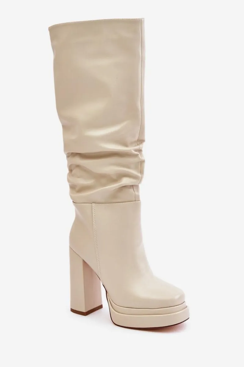 Kozaki Ocieplane|Kozaki Na Słupku>Boto Wsuwane Kozaki Na Słupku I Platformie Z Marszczeniem Ocieplane Jasnobeżowe Beridra Beżowy