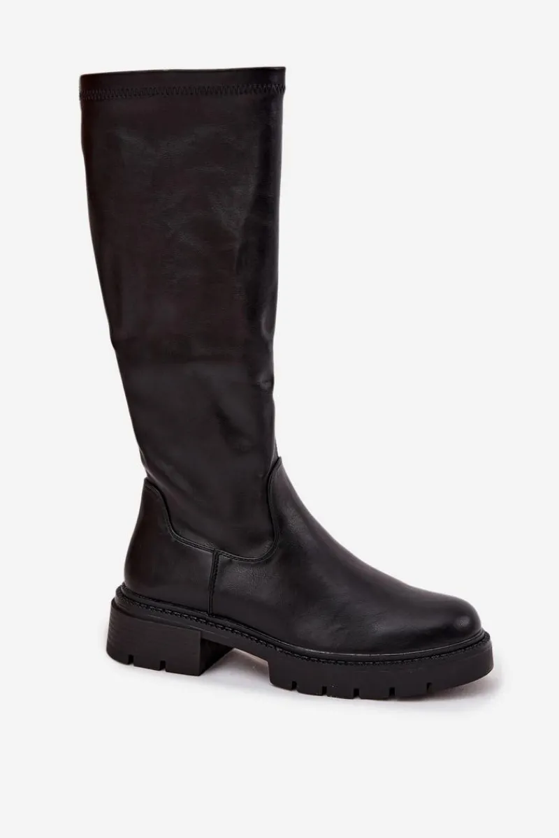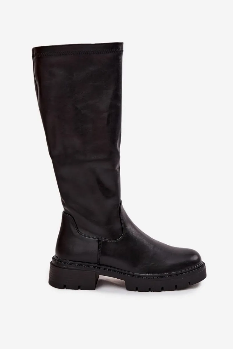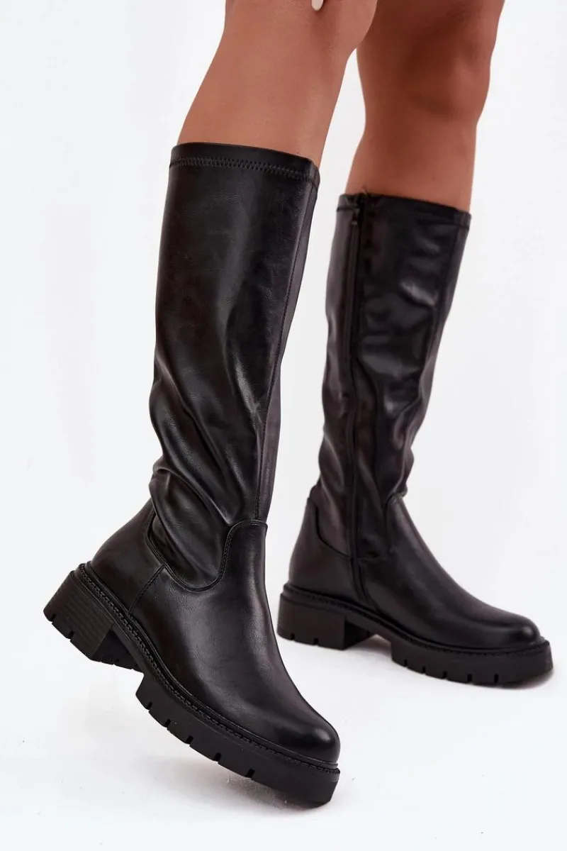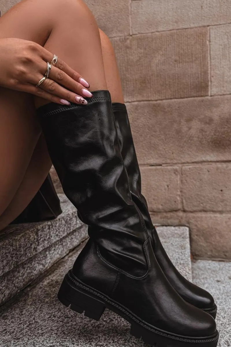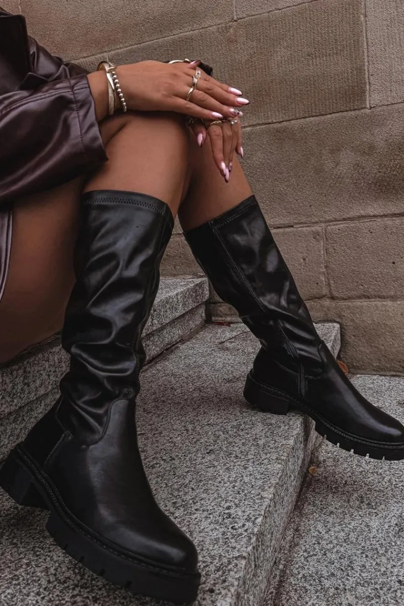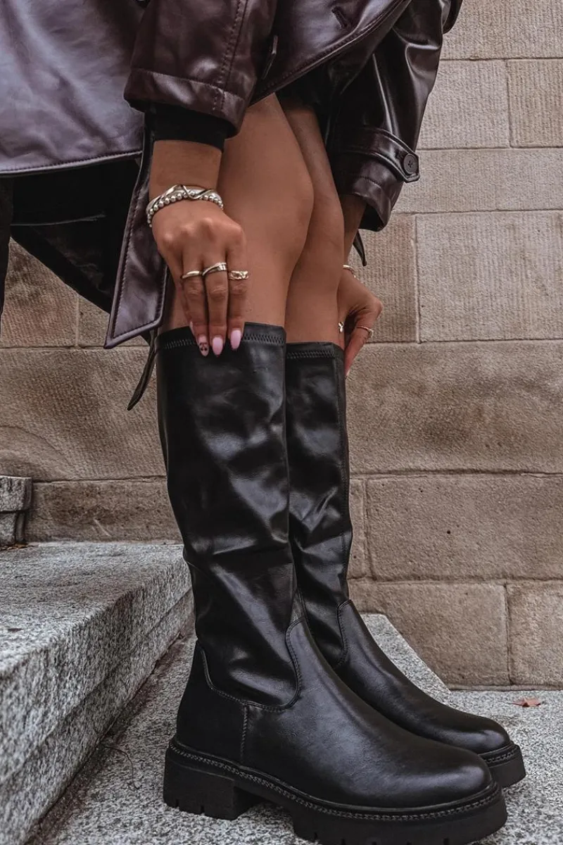 Kozaki damskie wykonane z eko skóry to klasyczna propozycja na chłodniejsze dni. Model z dopasowaną cholewką pięknie podkreśla nogę, tworząc kobiecą i smukłą sylwetkę. Wnętrze ocieplane kocem obuwniczym na wysokości stopy zapewnia komfort oraz ciepło podczas noszenia. Praktyczne zapięcie na zamek ułatwia zakładanie i zdejmowanie obuwia. To ponadczasowy fason, który doskonale komponuje się zarówno z sukienkami, jak i spódnicami, tworząc stylowe outfity. Przy wyborze rozmiaru prosimy sugerować się tabelą rozmiarów.