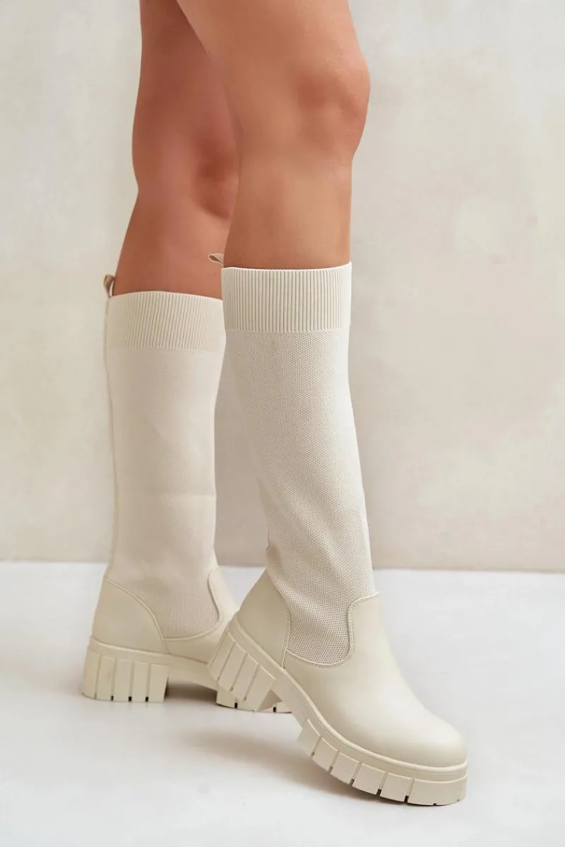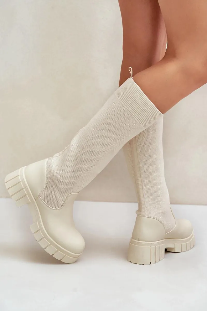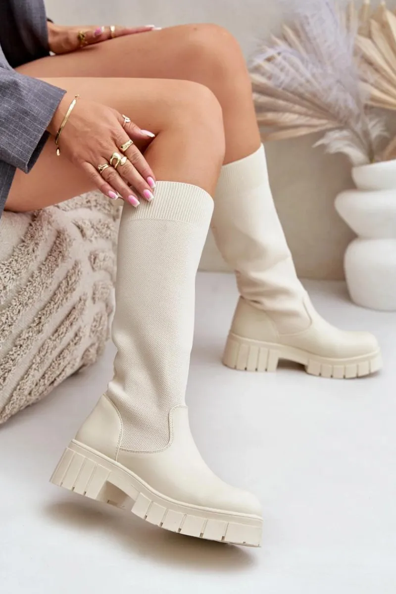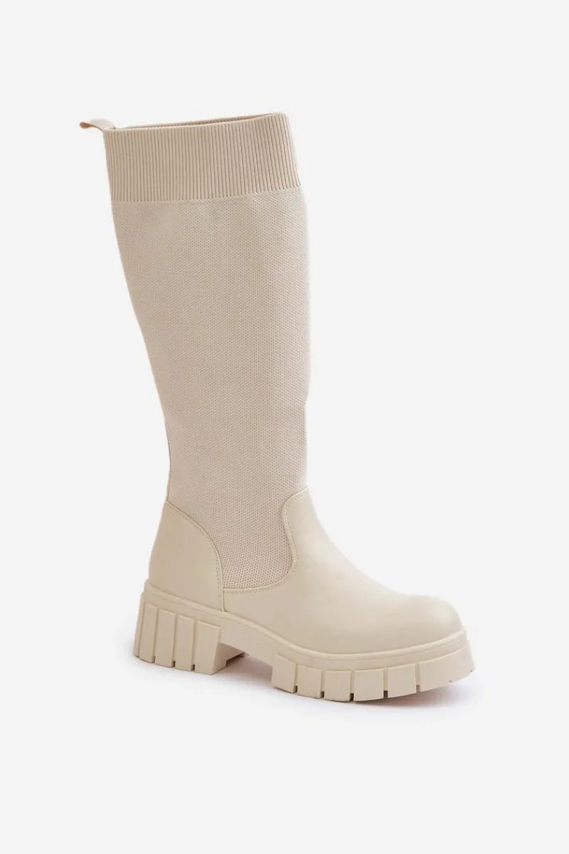 Klasyczne damskie kozaki zostały wykonane z połączenia eko skóry oraz materiału tekstylnego. Osadzone na płaskim obcasie i delikatnej platformie ze żłobieniami. Buty te posiadają ocieplaną wkładkę. Te klasyczne kozaki świetnie będą pasować do jesiennych stylizacji. Modny fason, który powinnaś mieć! Przy wyborze rozmiaru prosimy kierować tabelą rozmiarów.