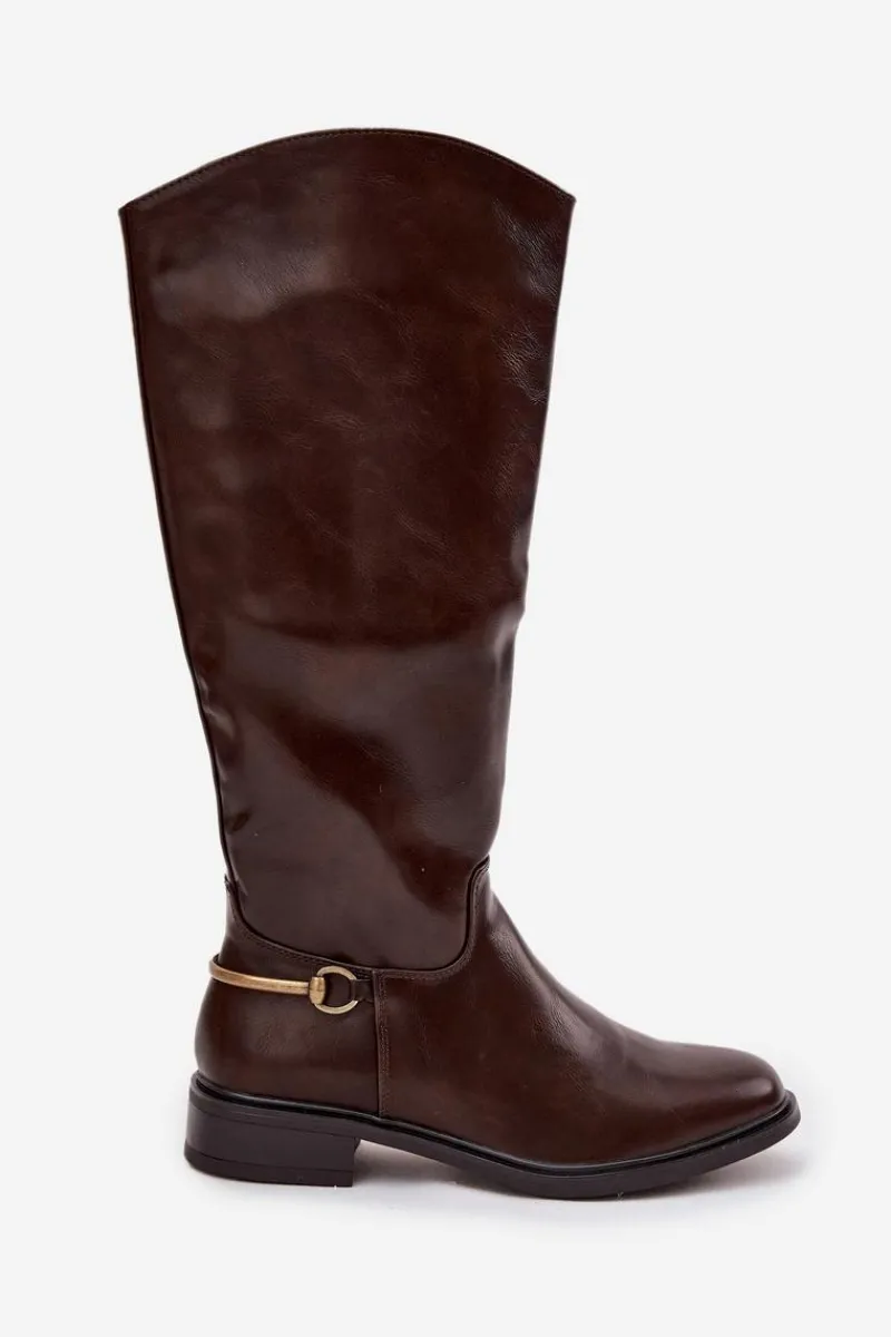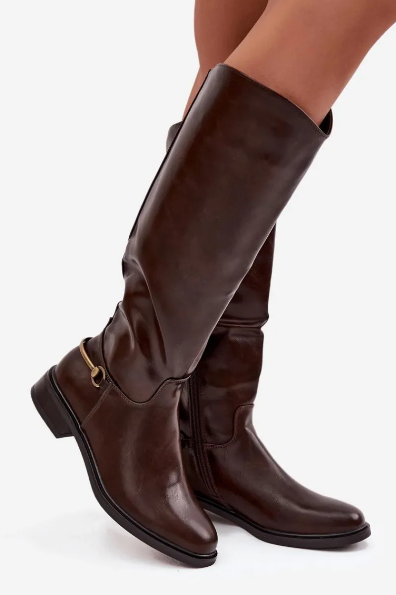Damskie kozaki wykonane z eko skóry to doskonały wybór dla kobiet ceniących styl i wygodę w codziennym wydaniu. Model osadzony na płaskim obcasie zapewnia komfort noszenia przez cały dzień, a miękkie ocieplenie kocem obuwniczym gwarantuje przyjemne ciepło w chłodniejsze dni. Dzięki praktycznemu zapięciu na zamek buty są łatwe w zakładaniu i dobrze dopasowują się do nogi. Zaokrąglone noski nadają im klasycznego charakteru, natomiast złoty detal u dołu cholewki stanowi eleganckie wykończenie. To ponadczasowe kozaki, które znakomicie uzupełnią jesienno-zimowe stylizacje. Przy wyborze rozmiaru prosimy kierować tabelą rozmiarów.