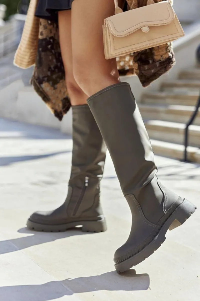 Klasyczne, piękne kozaki, które koniecznie muszą znaleźć się w Twojej kolekcji. Cholewka sięgająca aż do kolana, wykonana ze skóry ekologicznej. Wnętrze delikatnie ocieplone piankowym materiałem. Gruba, stabilna podeszwa to dodatkowa izolacja przed zimnem oraz polepszenie naszego komfortu podczas noszenia. Kozaki posiadają na boku suwak ułatwiający zapinanie. Nie zwlekaj i sprawdź całą kolekcję naszych kozaków. Przy wyborze rozmiaru, prosimy sugerować się tabelą rozmiarów.