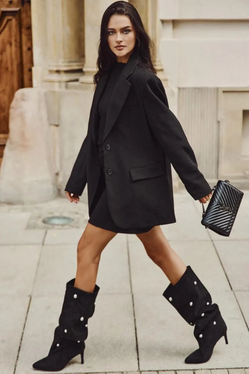 Model wsuwany został zaprojektowany z myślą o komforcie – łatwo się zakłada i doskonale dopasowuje do nogi. Smukła szpilka o wysokości 7 cm optycznie wysmukla sylwetkę, dodając elegancji i kobiecego wdzięku. Wnętrze wykończone miękkim kocem obuwniczym oraz tkaniną gwarantuje ciepło i wygodę nawet w chłodniejsze dni. To idealne kozaki na wyjątkowe okazje, wieczorne wyjścia czy eleganckie stylizacje, które wymagają nuty klasy i szyku.