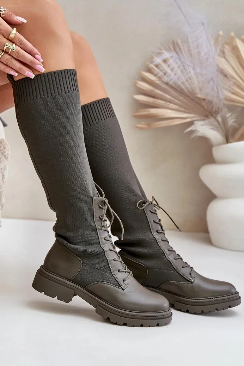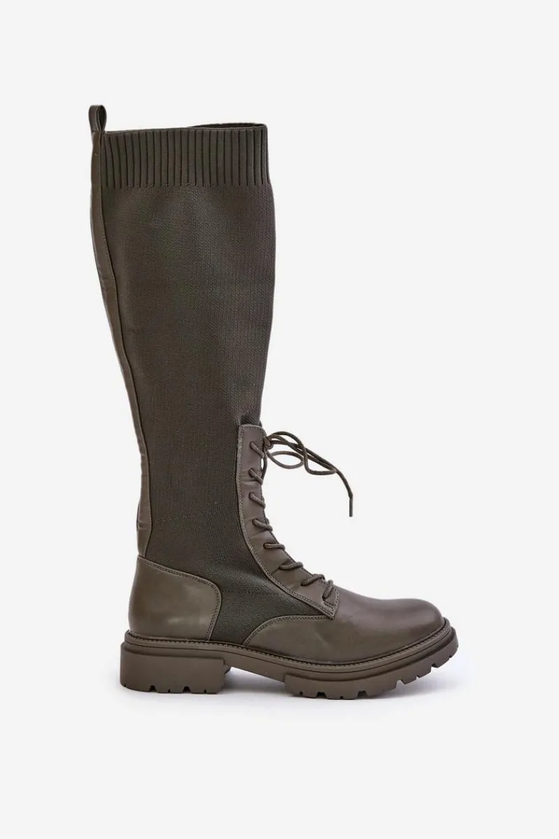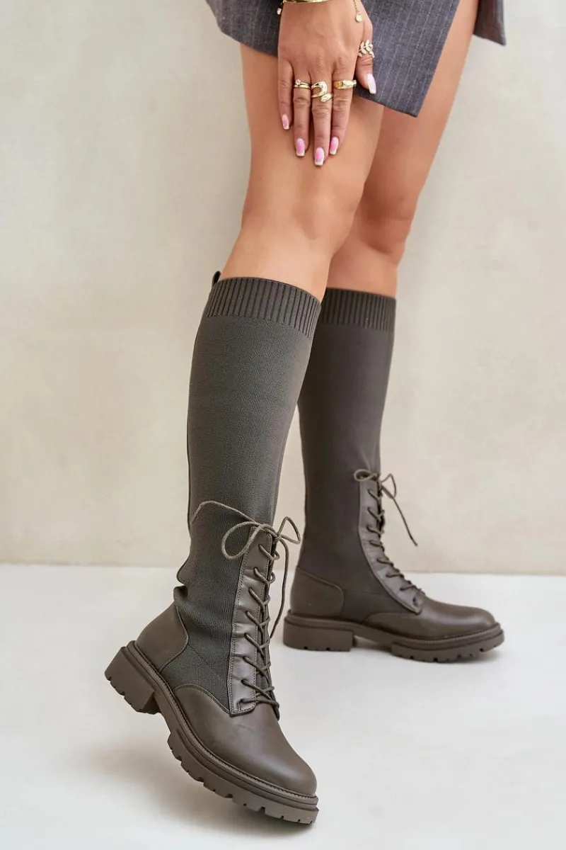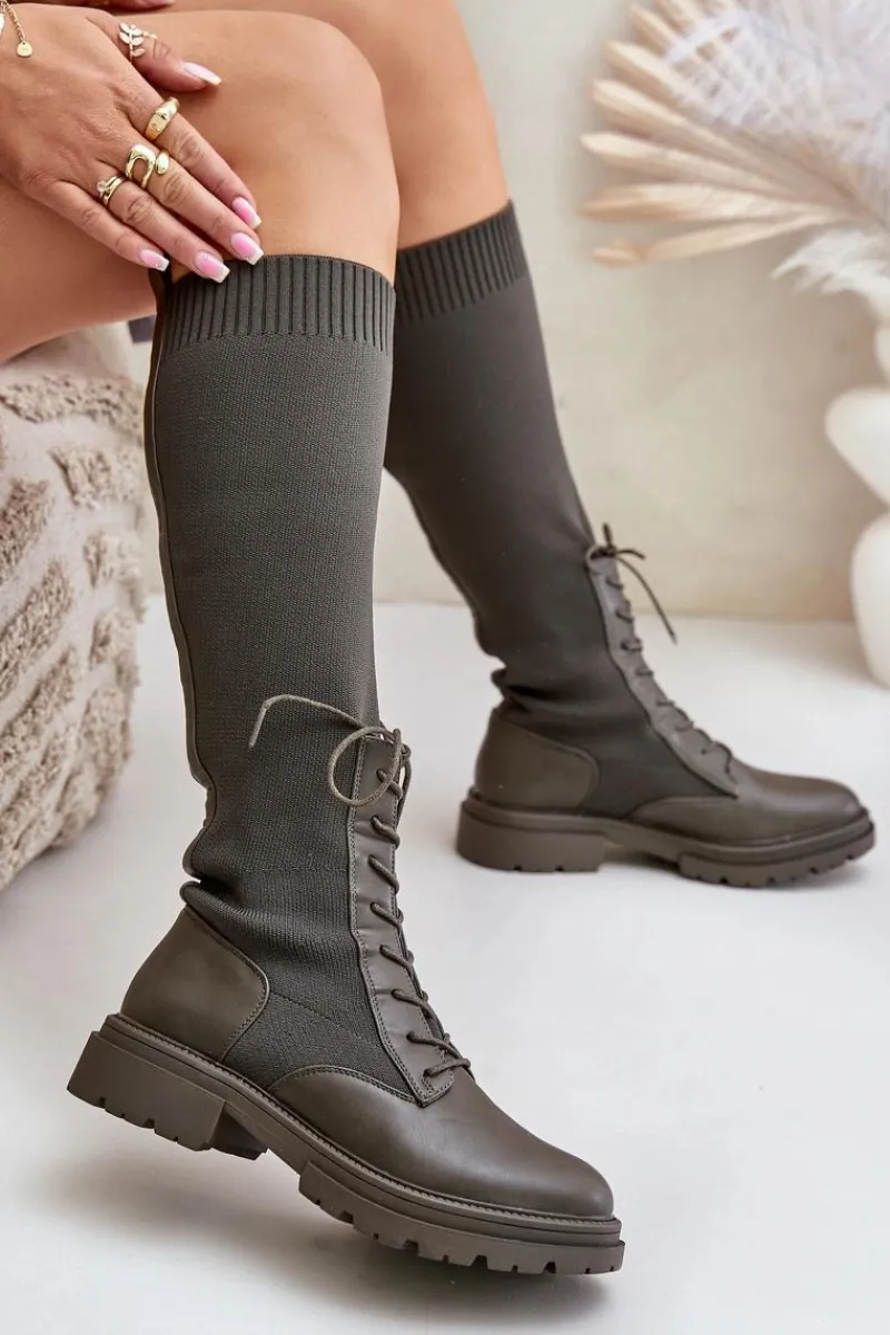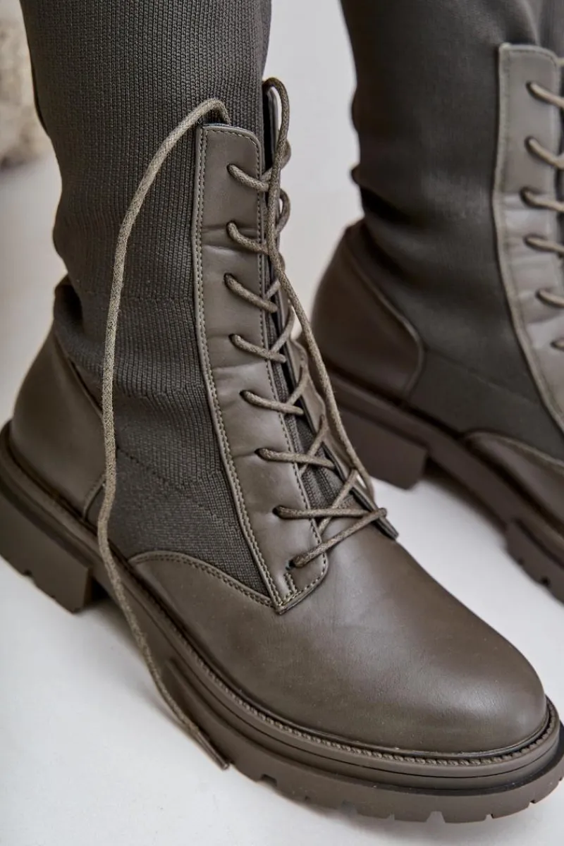 Damskie kozaki wykonane z połączenia ekologicznej skóry i materiału tekstylnego. Model wyróżnia się zaokrąglonymi noskami, które gwarantują komfort noszenia. Wnętrze butów jest ocieplone kocem obuwniczym, ograniczonym do części stopy. Elastyczna cholewka ze sznurowaniem nowoczesny, stylowy charakter. Przy wyborze rozmiaru prosimy kierować tabelą rozmiarów.