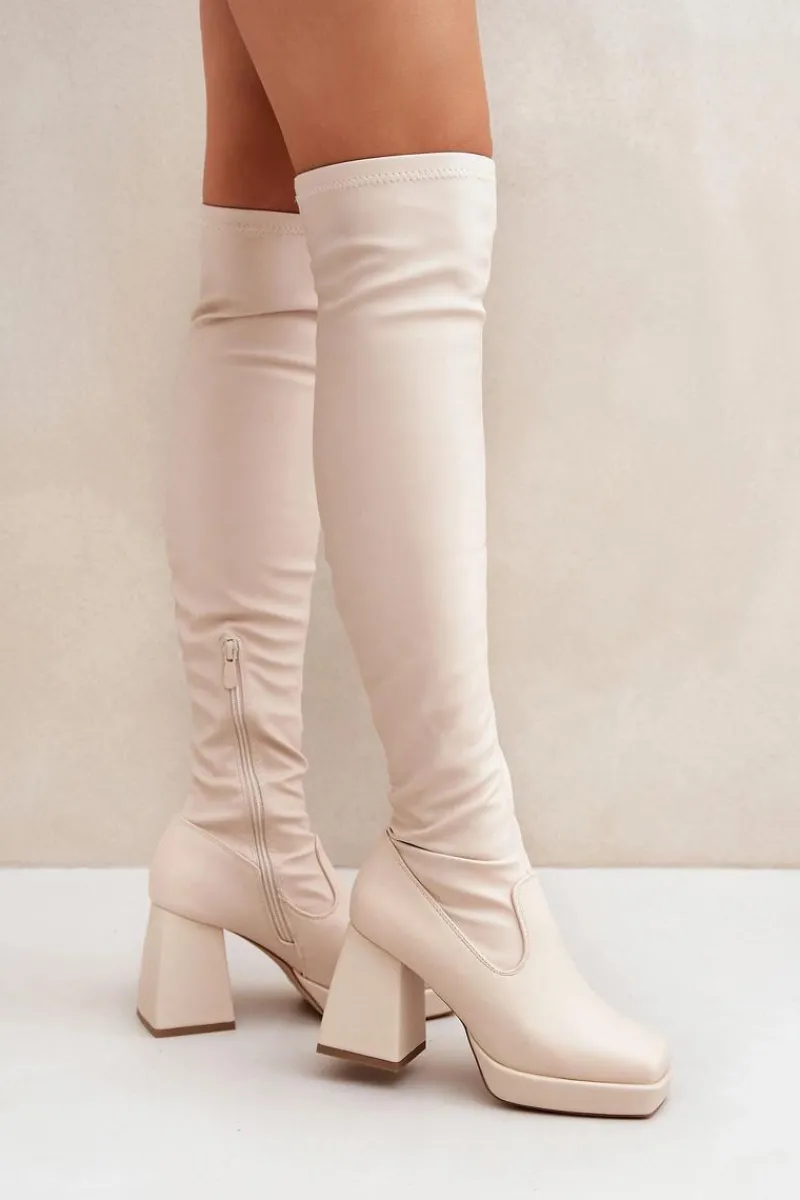 Dopasowane kozaki damskie wykonane z eko skóry, które idealnie podkreślają nogi. Osadzone na stabilnym obcasie typu słupek, zapewniają elegancję i wygodę. Cholewka sięgająca za kolano dodaje szyku, a noski w kwadrat nadają nowoczesnego charakteru. Model wsuwany, z dodatkowym zapięciem na zamek ułatwiającym zakładanie. Środek lekko ocieplany kocem obuwniczym. Stylowe i kobiece, świetne na różne okazje. Przy wyborze rozmiaru prosimy sugerować się tabelą rozmiarów.