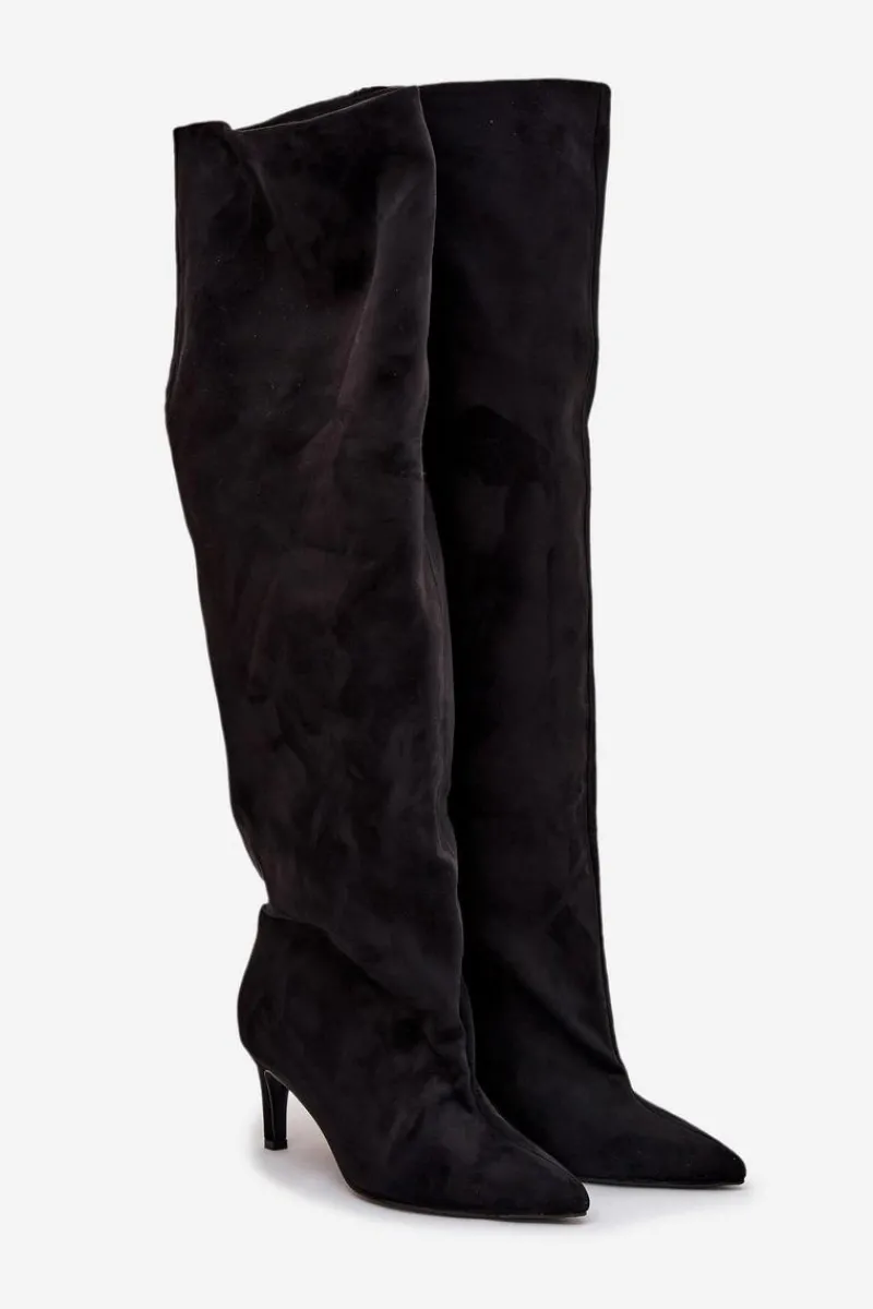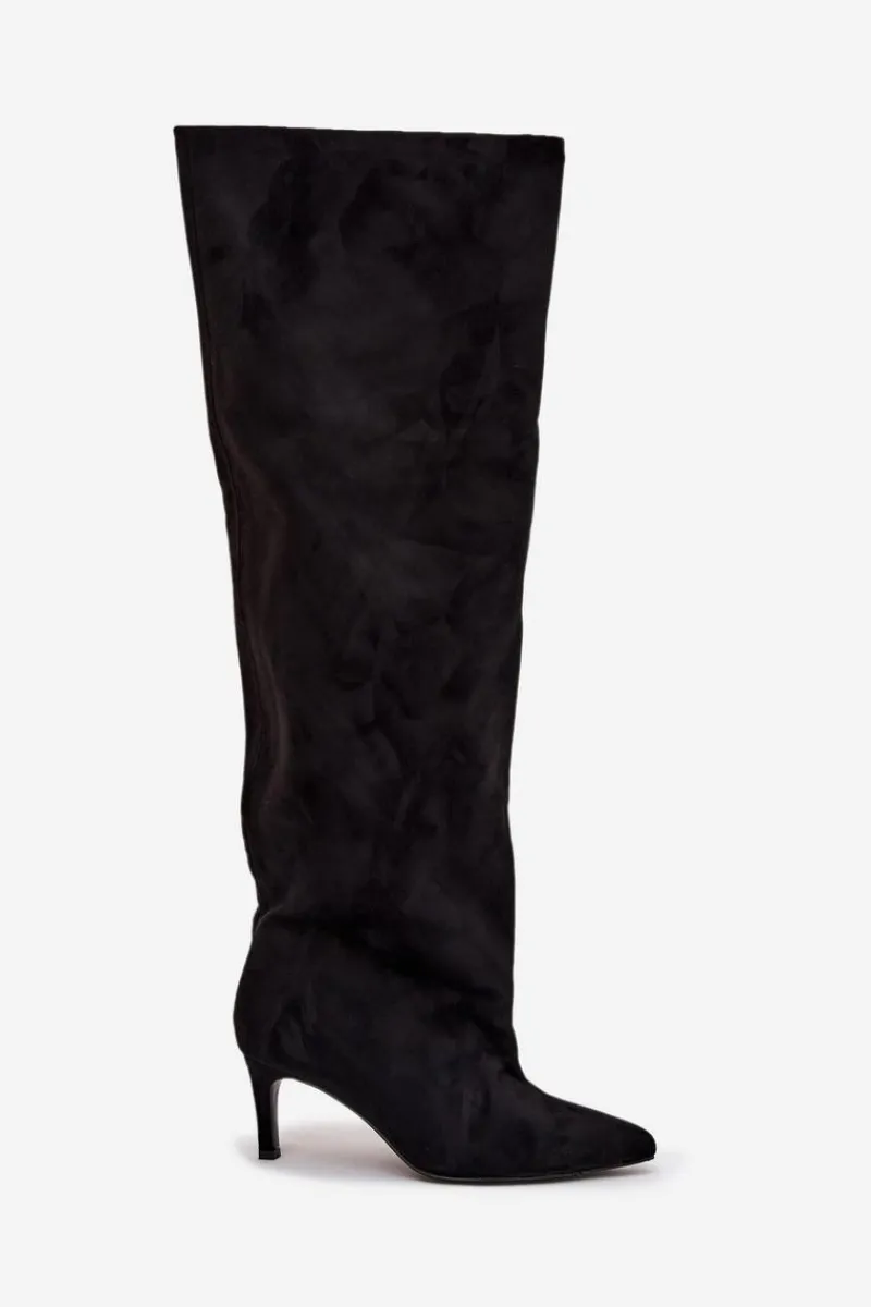 Kozaki Mavilla to propozycja dla kobiet, które cenią sobie elegancję i klasykę w nowoczesnym wydaniu. Wykonane z miękkiego eko zamszu w ciepłym czarnym odcieniu, prezentują się niezwykle stylowo i kobieco. Wysoka cholewka sięgająca za kolano pięknie wydłuża nogi, a smukła linia buta subtelnie podkreśla sylwetkę. To model, który doskonale łączy modny wygląd z wygodą użytkowania.