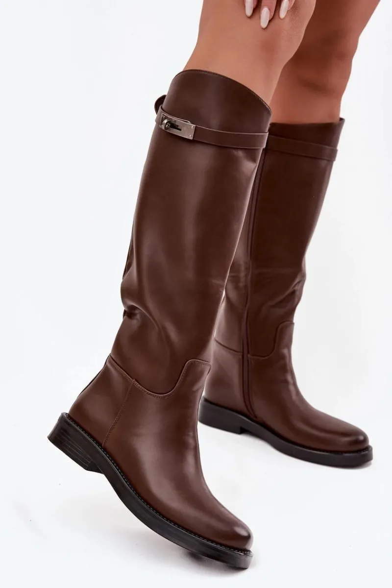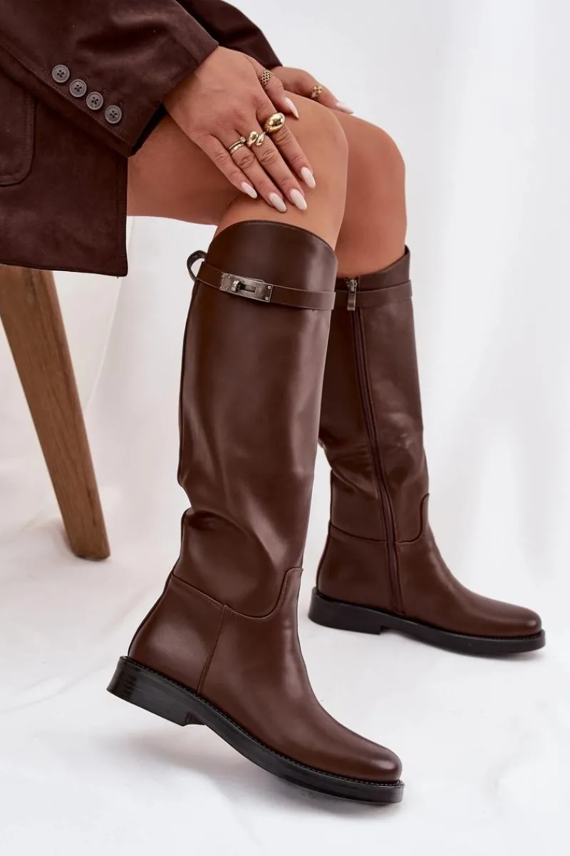 Kozaki damskie wykonane z eko skóry to stylowa i praktyczna propozycja na chłodniejsze dni. Model osadzony na płaskim obcasie zapewnia wygodę podczas codziennego noszenia, a zapięcie na zamek ułatwia zakładanie i zdejmowanie. Zaokrąglone noski podkreślają klasyczny charakter obuwia, dzięki czemu kozaki doskonale komponują się z wieloma stylizacjami. Wnętrze ocieplone wyłącznie na wysokości stopy gwarantuje komfort i ciepło bez nadmiernego przegrzewania. U góry cholewki znajduje się ozdobny pasek z eleganckim detalem, który dodaje całości subtelnego uroku. To model, który świetnie sprawdzi się w zestawieniu z sukienkami, spódnicami, legginsami czy dopasowanymi jeansami typu skinny, tworząc kobiecy i stylowy look idealny na sezon jesienno-zimowy. Przy wyborze rozmiaru prosimy sugerować się tabelą rozmiarów.