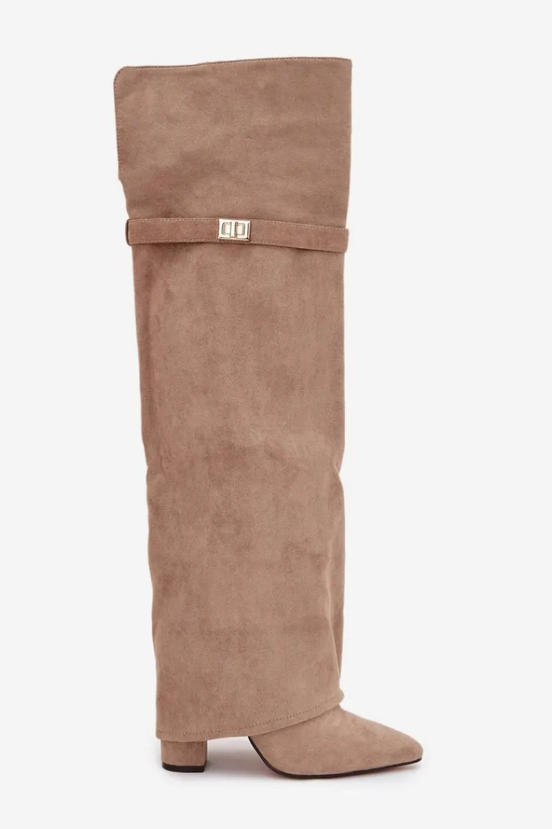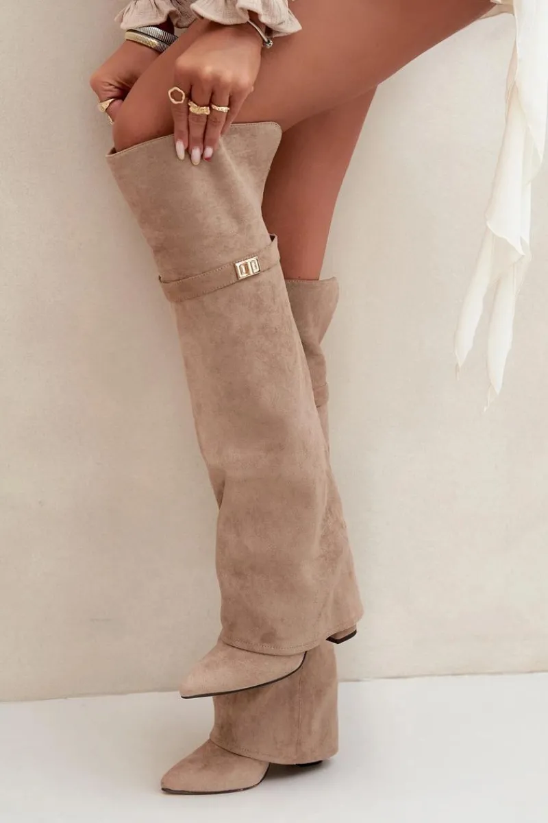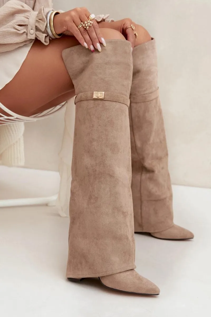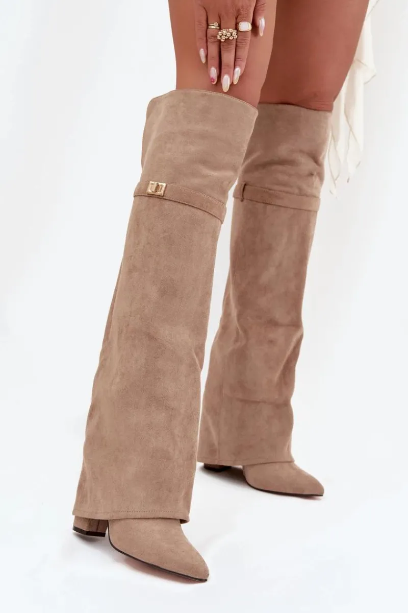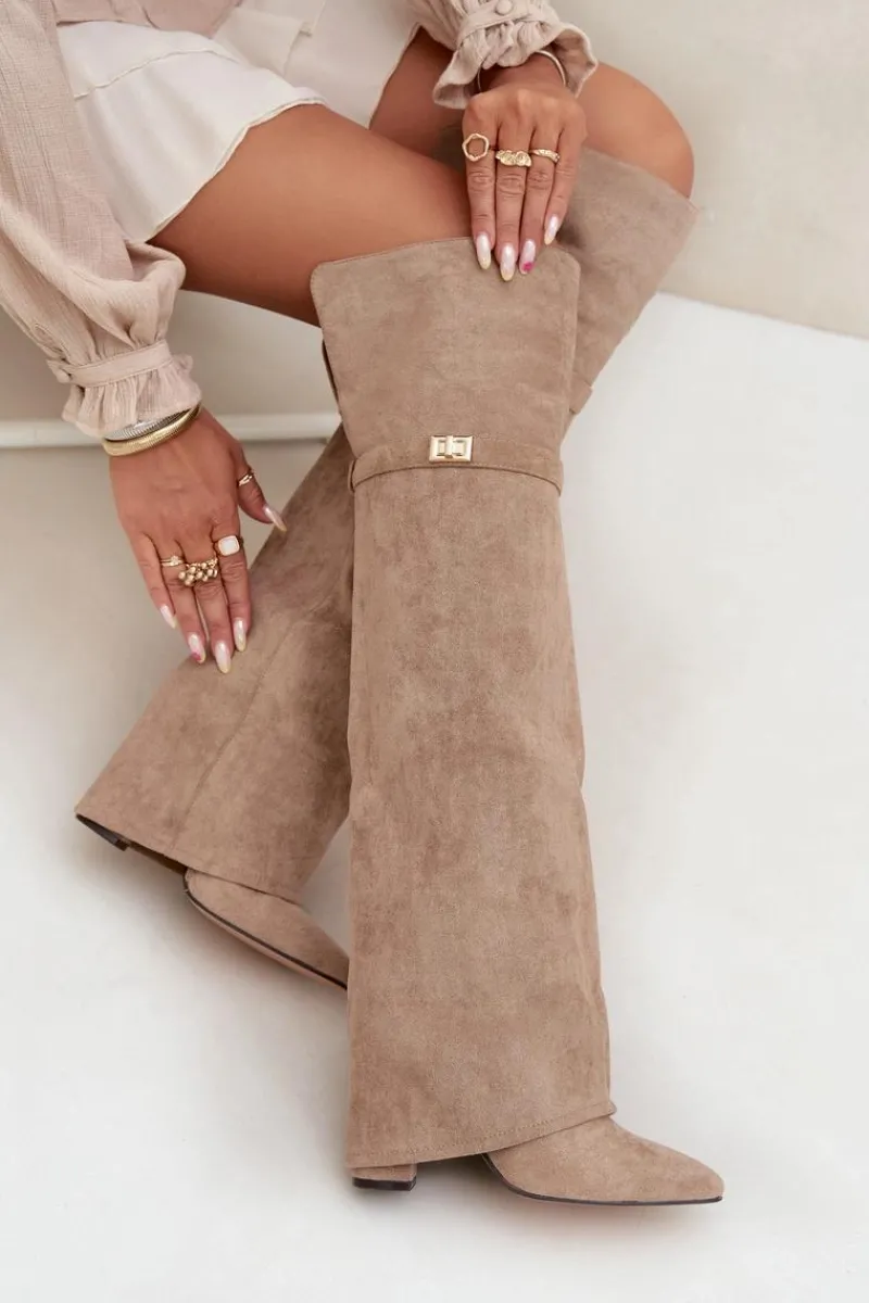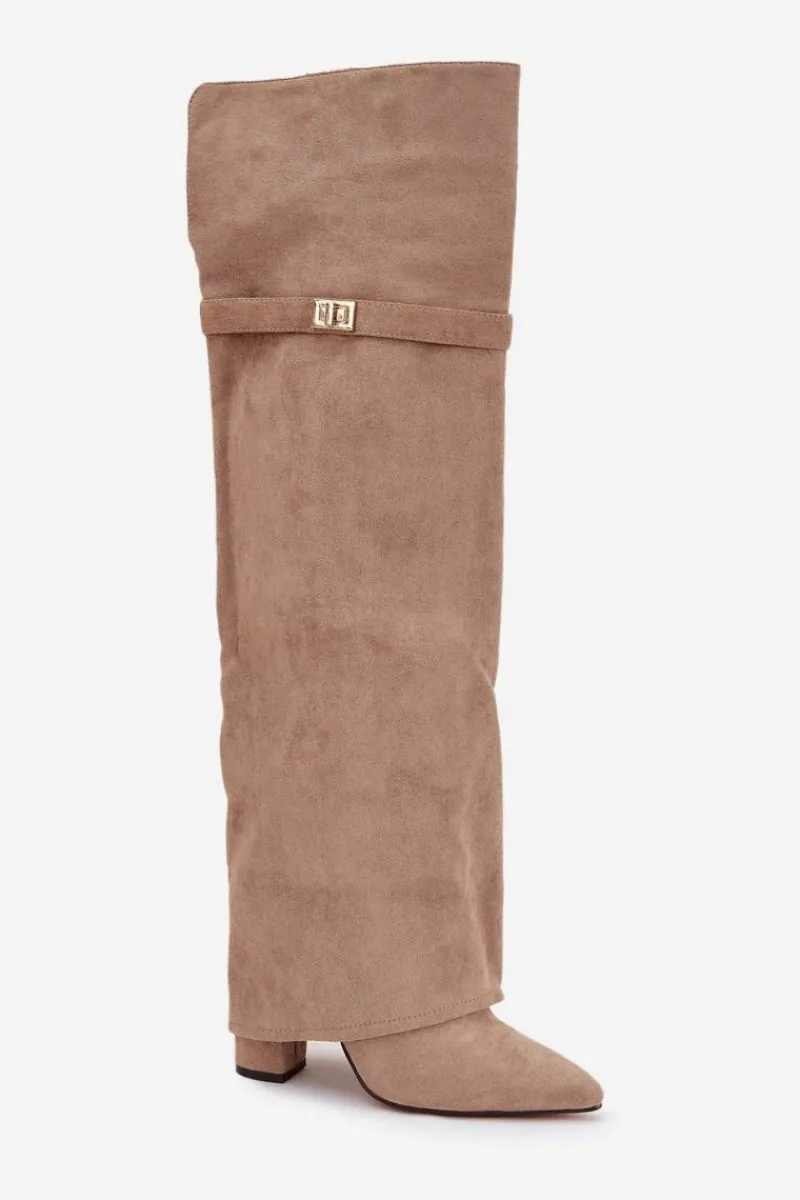 Kozaki damskie z wywiniętą cholewką to prawdziwy hit nadchodzącego sezonu jesienno-zimowego! Cholewka sięga za kolano i nachodzi na obcas dodaje im niepowtarzalnego charakteru. Osadzone na stabilnym obcasie typu słupek, zapewniają komfort i elegancję, a ocieplenie gwarantuje ciepło w chłodniejsze dni. Wsuwane i z noskami w szpic, łączą w sobie wygodę z modnym, kobiecym stylem – idealne do tworzenia efektownych, zimowych stylizacji. Przy wyborze rozmiaru prosimy sugerować się tabelą rozmiarów.