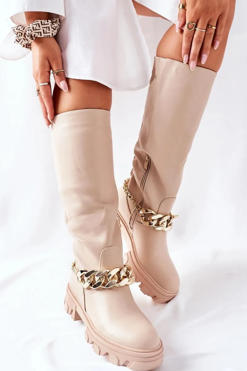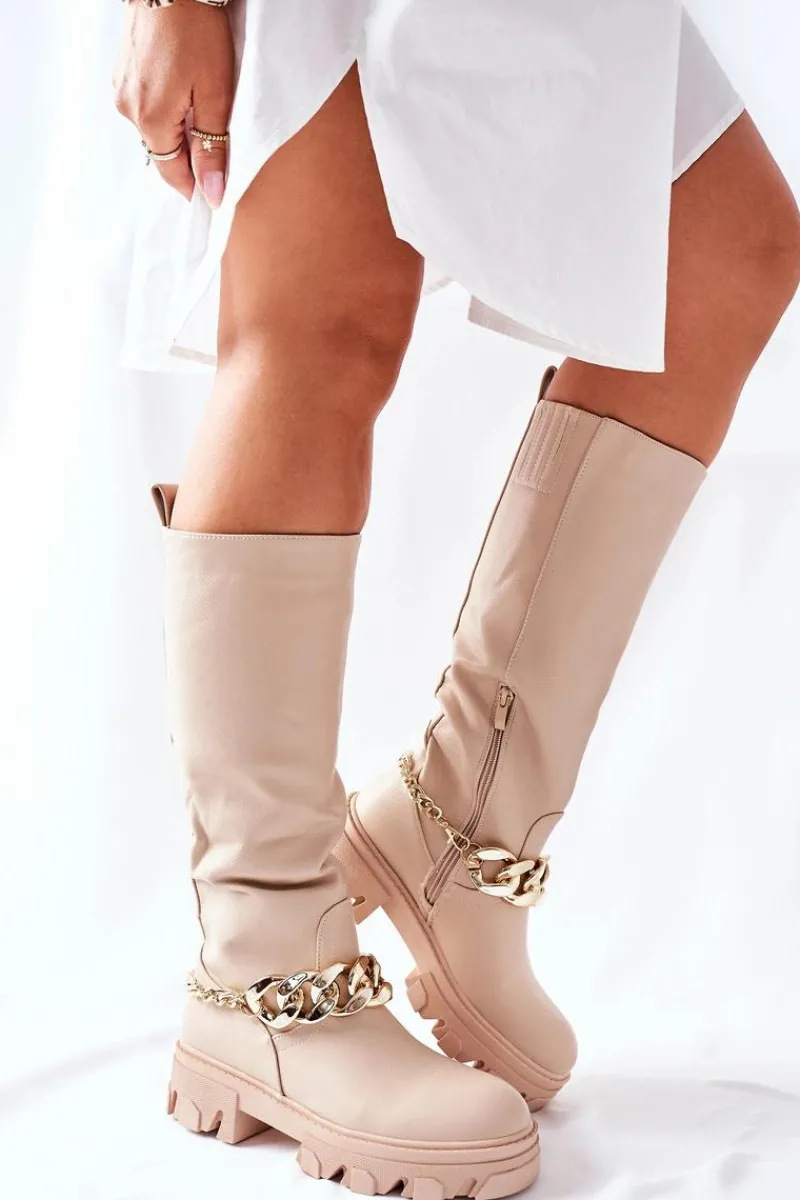 Kozaki do kolana wykonane ze skóry ekologicznej. Wnętrze ocieplane kocem obuwniczym.