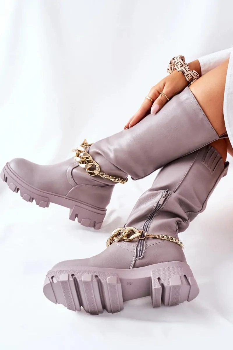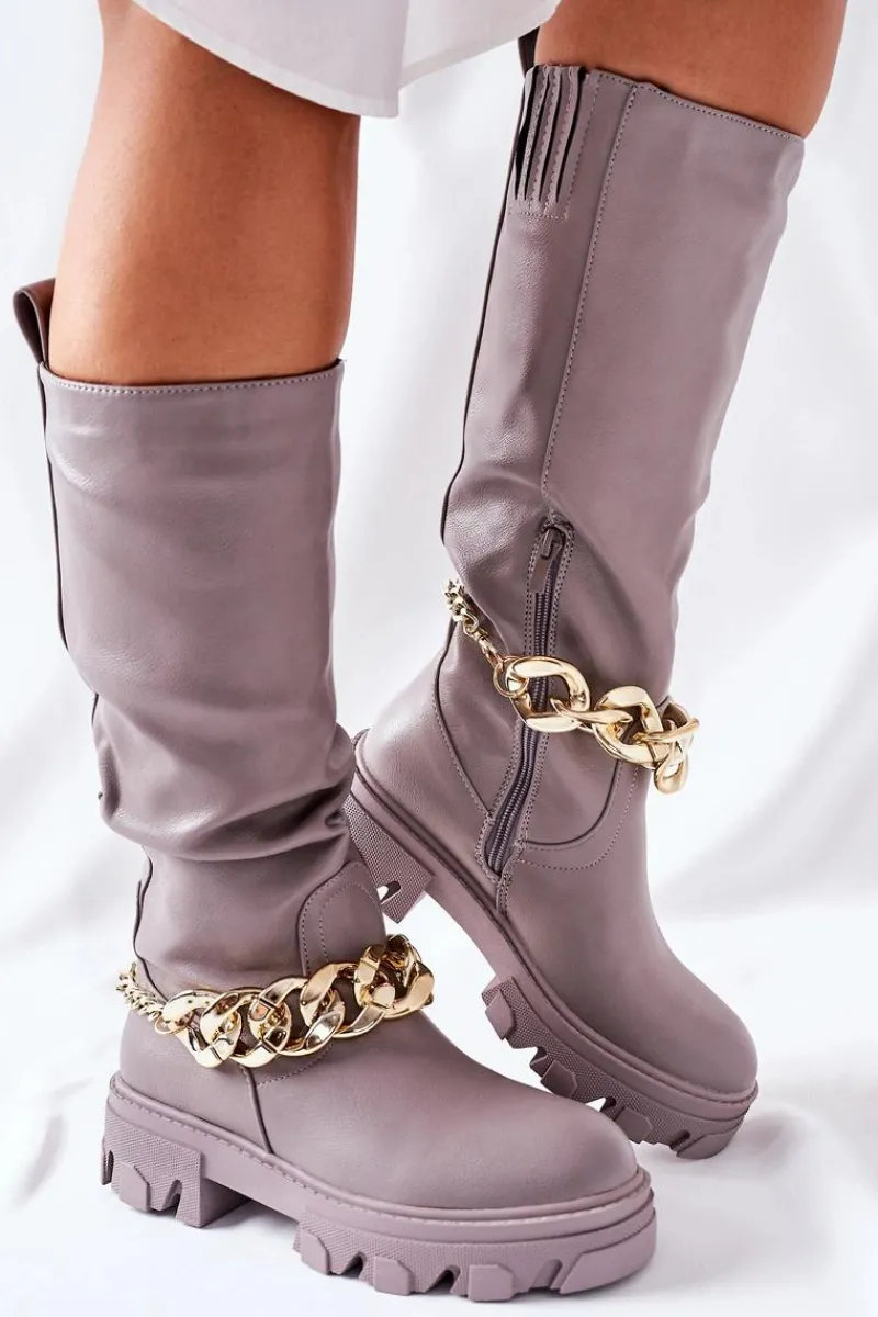 Kozaki do kolana wykonane ze skóry ekologicznej. Wnętrze ocieplane kocem obuwniczym.