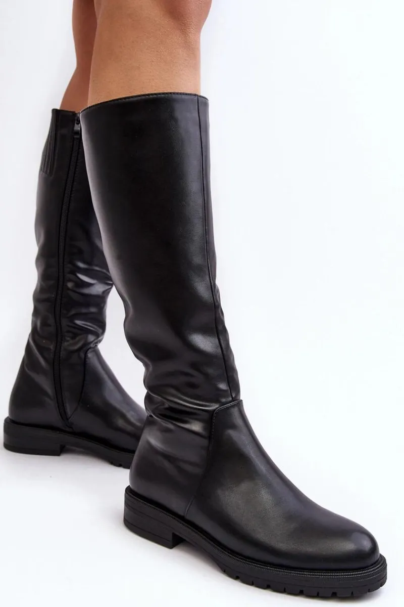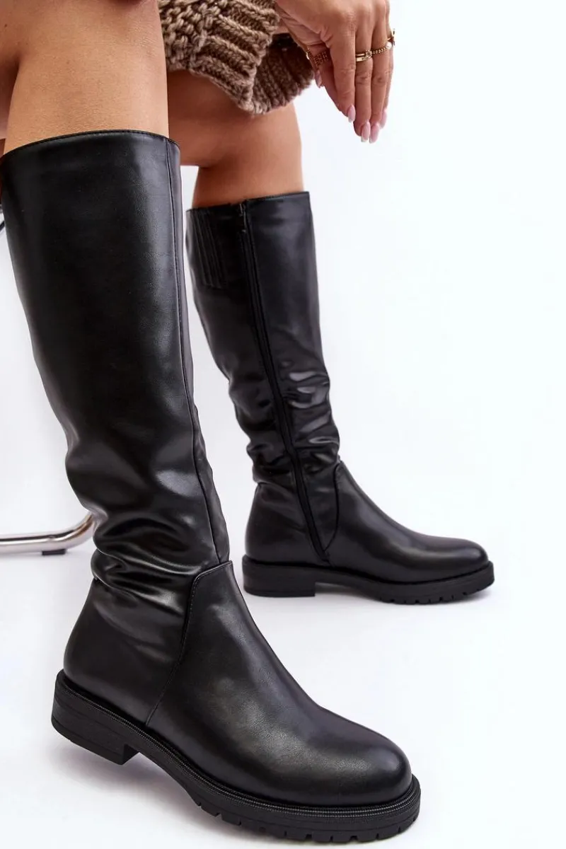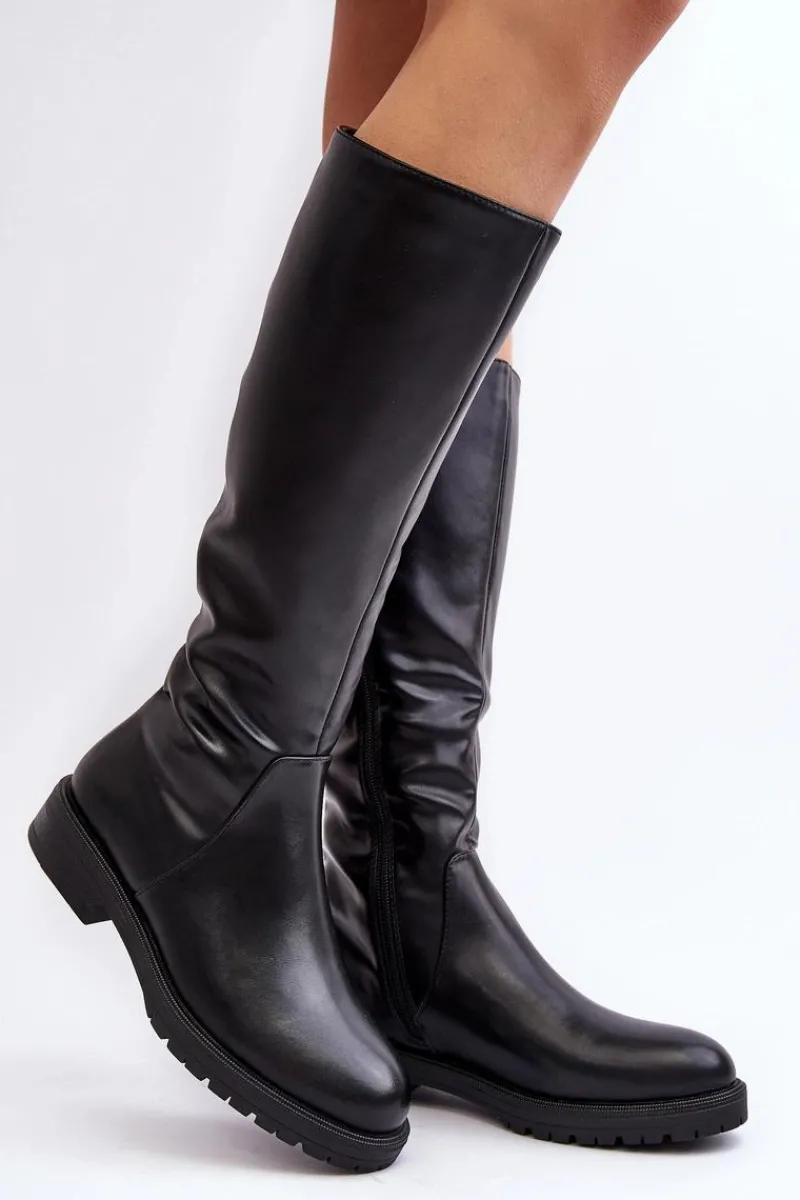 Damskie kozaki zostały wykonane z wysokiej jakości eko skóry. Osadzone na płaskim obcasie. Ocieplone w środku futerkiem. Cholewka przed kolano zapinana na suwak. Noski zaokrąglone. Usztywniony zapiętek. Ten klasyczny model powinien znaleźć się w Twojej szafie! Wykorzystasz je w wielu sytuacjach! Przy wyborze rozmiaru prosimy sugerować się tabelą rozmiarów.