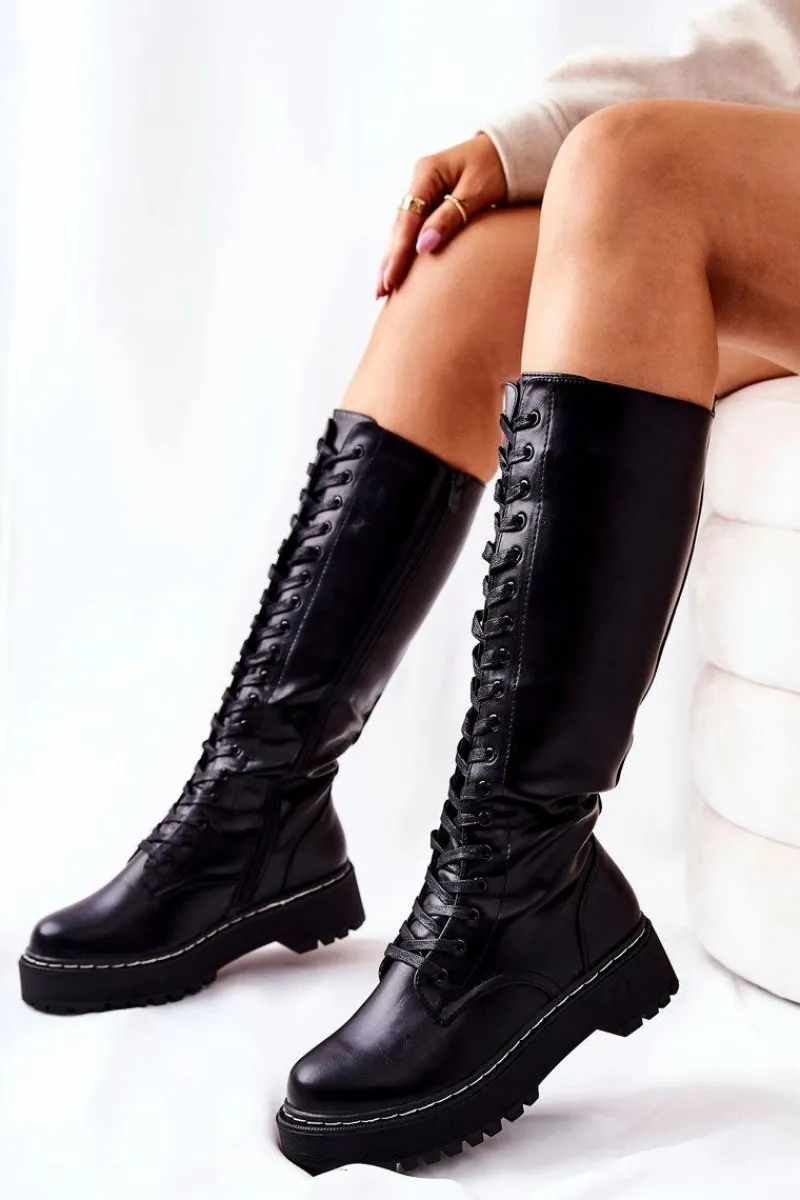 Wspaniałe kozaki, które mogą być Twoje! Wysoka cholewka ocieplona wewnątrz przyjemnym w dotyku kocem obuwniczym gwarantuje komfort nawet w najchłodniejsze dni. Zakładanie ułatwi wszyty na boku suwak, a idealne dopasowanie zapewni solidne sznurowanie na całej długości cholewki. Gruba podeszwa to dodatkowa ochrona przed zimnym podłożem.Przy wyborze rozmiaru prosimy sugerować się tabelą rozmiarów.