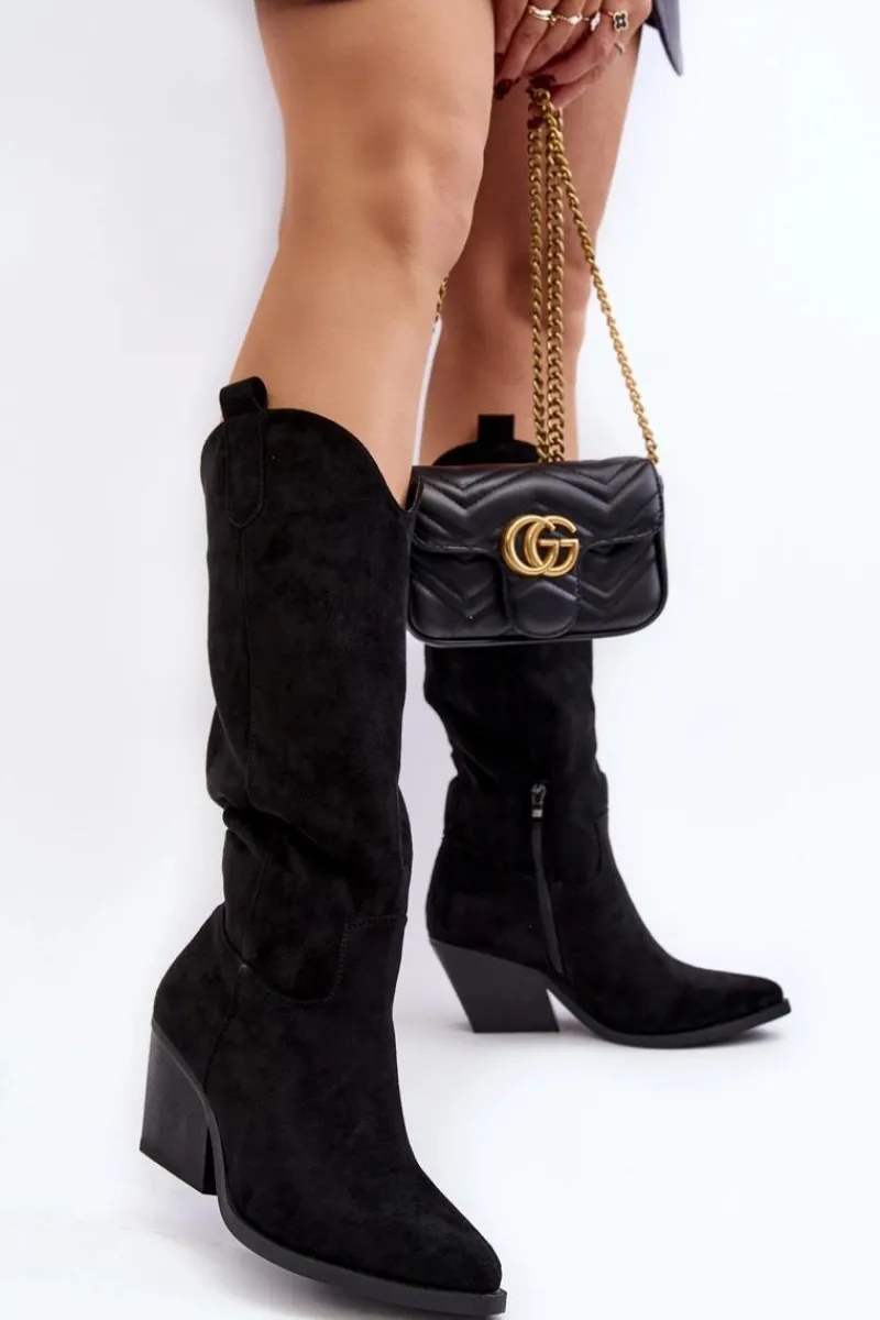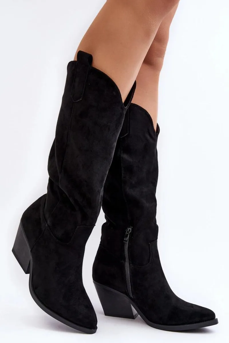Modne kozaki-kowbojki uzupełnią wiele Twoich jesiennych stylizacji! Model wykonany z miłego eko zamszu. Kozaki są wsuwane, a także posiadają zamek na dole cholewki. Osadzone na obcasie w postaci słupka. Nosek w szpic optycznie wysmukli nogi. Kozaki posiadają usztywniany zapiętek. Koniecznie musisz je mieć! Przy wyborze rozmiaru prosimy sugerować się tabelą rozmiarów.