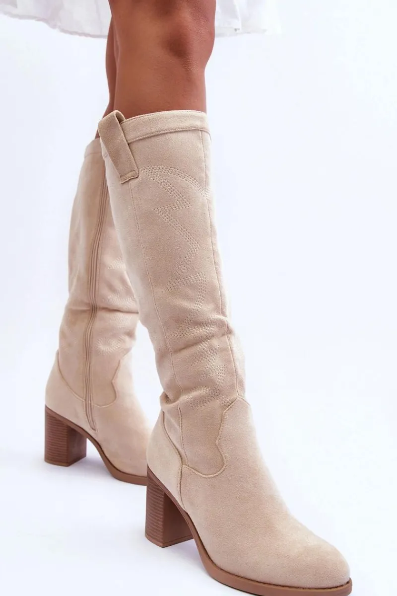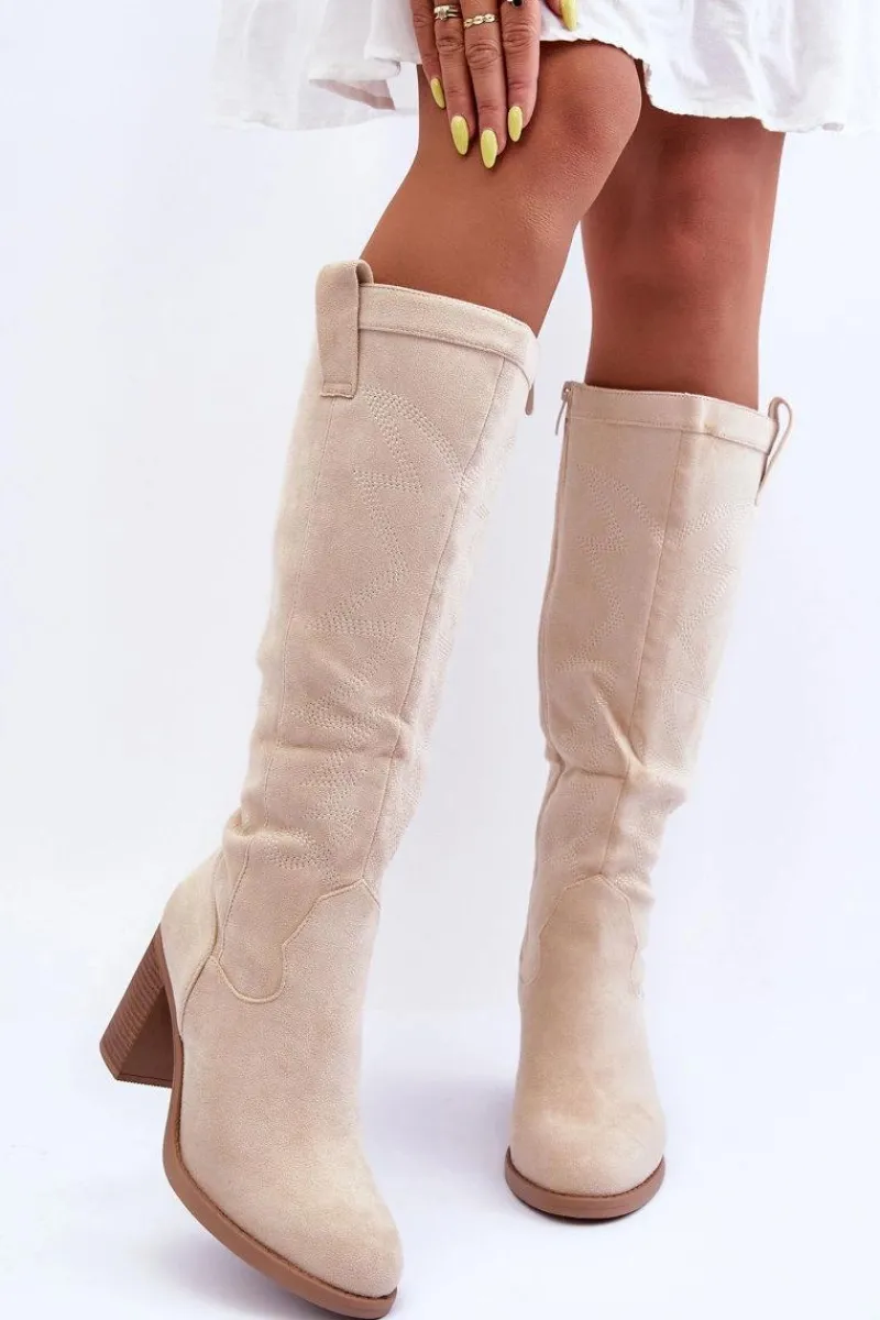 Kozaki damskie zostały wykonane z eko zamszu. Osadzone na obcasie w postaci słupka. Zapinane na suwak z boku. Dodatkowo zapiętek w tym obuwiu został usztywniony. Miękka wkładka zapewni komfortowe użytkowanie. Model ten świetnie sprawdzi się w wielu stylizacjach! Przy wyborze rozmiaru prosimy sugerować się tabelą rozmiarów.