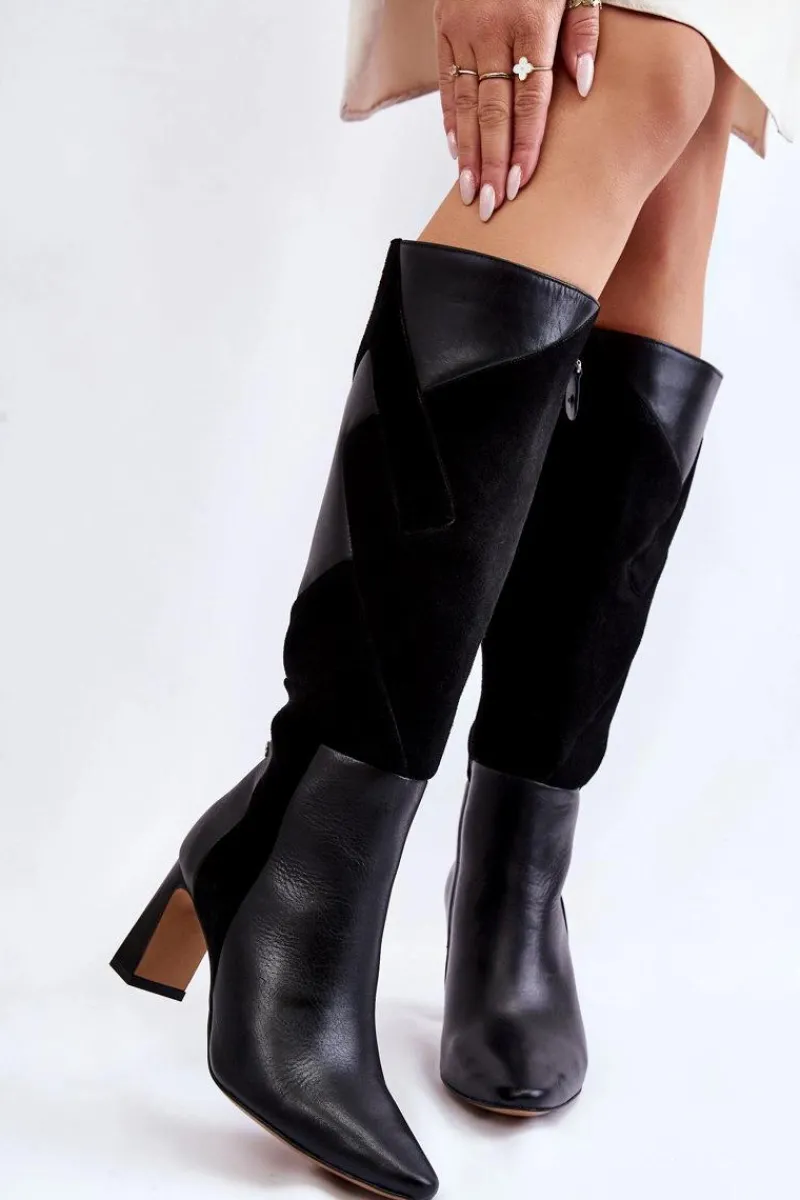 Wyjątkowe, damskie kozaki marki Maciejka zostały wykonane z połączenia wysokiej jakości naturalnych skór. Osadzone na obcasie w postaci płaskiego słupka. Kozaki posiadają zamek błyskawiczny z boku cholewki. Dodatkowo zapiętek jest usztywniany. Nosek w szpic optycznie wysmukli nogi. Wewnątrz kozaki zostały ocieplone miękkim kocem obuwniczym. Przy wyborze rozmiaru prosimy sugerować się tabelą rozmiarów.