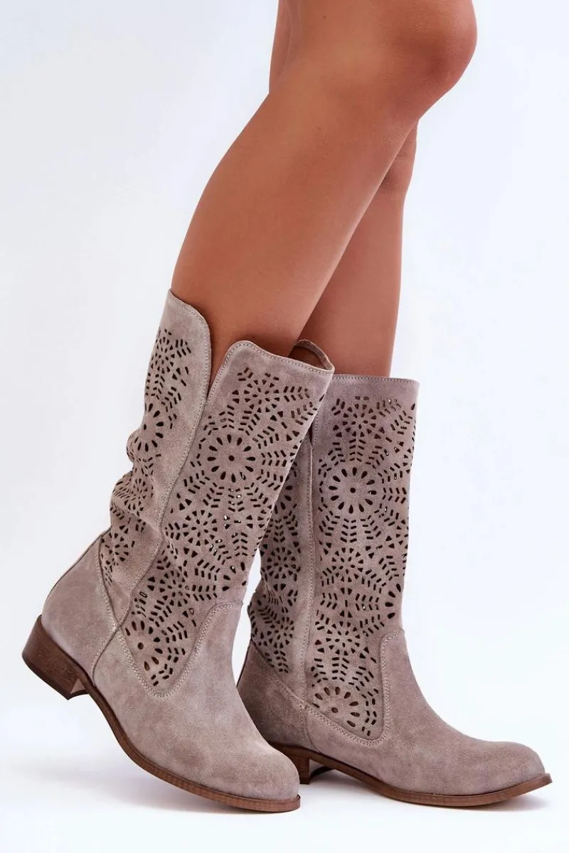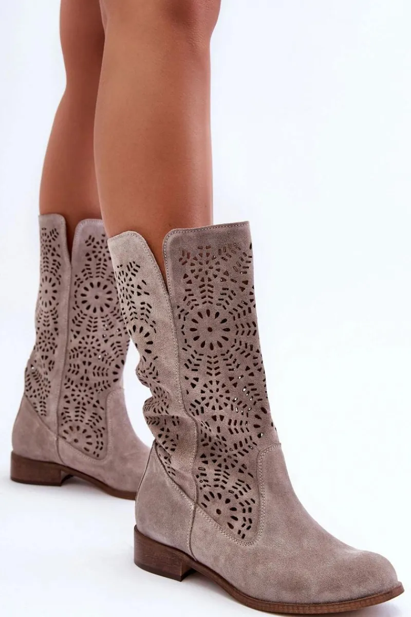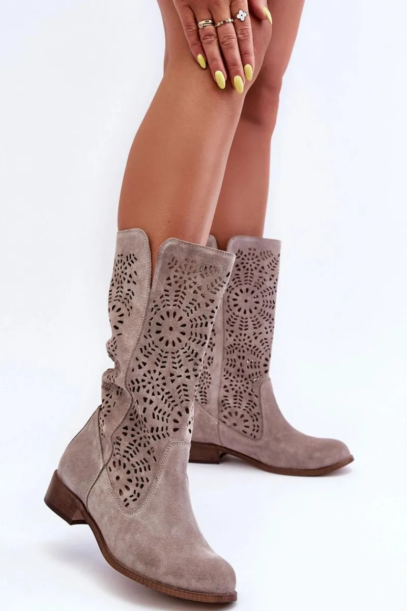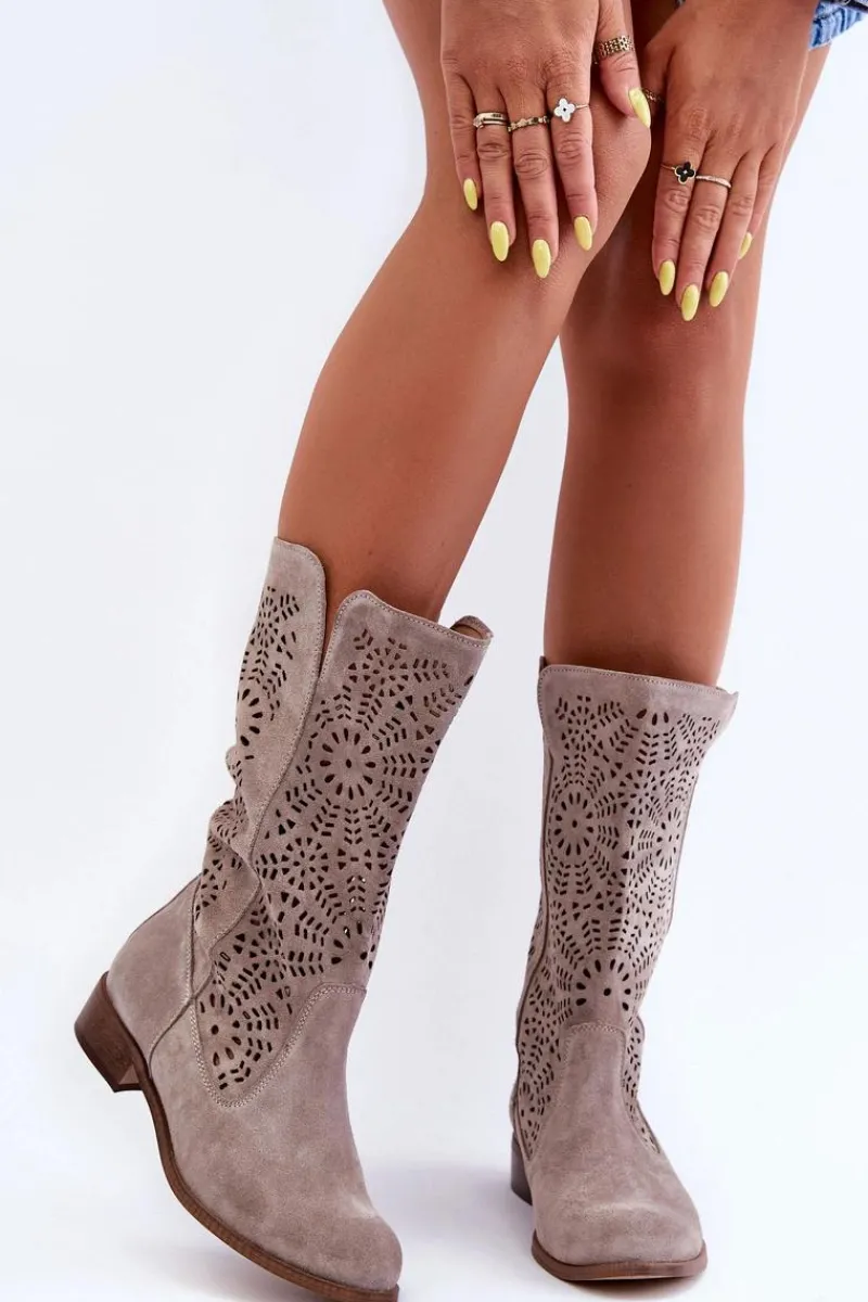 Kozaki Wiosenne|Kozaki Ażurowe>Boto Zamszowe Ażurowe Kozaki Lewski 3366/2 Cappucino