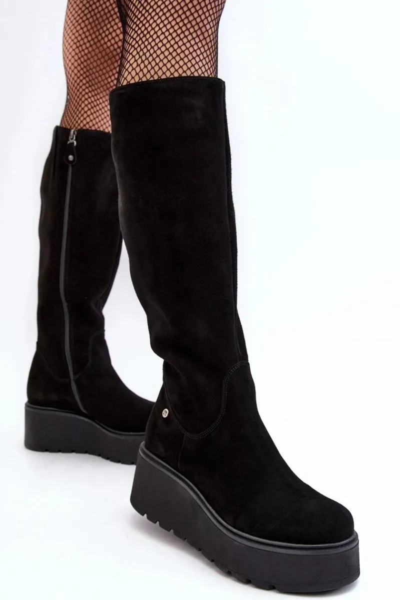 Wyjątkowe kozaki od renomowanej firmy Maciejka. Buty wykonane są w całości z naturalnej skóry. Miękka wkładka zapewni komfort. Osadzono je na masywnej platformie i koturnie. Dodatkowo zapiętek jest usztywniany. Kozaki dopełnią każdą Twoją stylizację. Koniecznie sprawdź całą naszą ofertę butów Maciejka. Przy wyborze rozmiaru prosimy sugerować się tabelą rozmiarów.