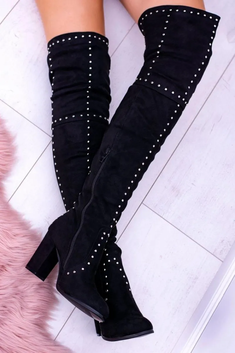 Kozaki Wiosenne|Kozaki Na Obcasie>Boto Czarne Zamszowe Kozaki Za Kolano Muszkieterki Ćwieki Almo