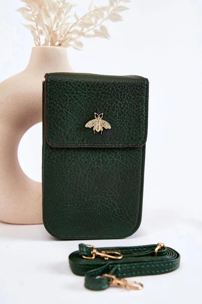 Torebka ta została wykonana z eko skóry. Posiada klapę zamykaną na magnes z ozdobnym owadem. W środku znajdują się jedna, otwarta komora. Dodatkowo do torebki jest dołączony regulowany, odpinany pasek. Z tyłu posiada pasek zapinany na napę z dodatkowym miejscem na wizytówki. Torebka pomieści najważniejsze rzeczy m.in.: dowód osobisty, dowód rejestracyjny czy smartfon.
