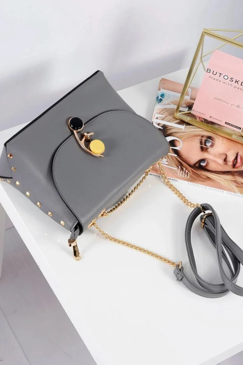 Listonoszki>Boto Stylowa Szara Torebka Damska Listonoszka Złoty Łańcuch