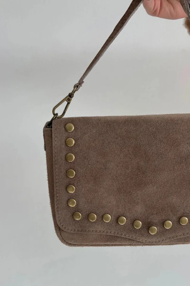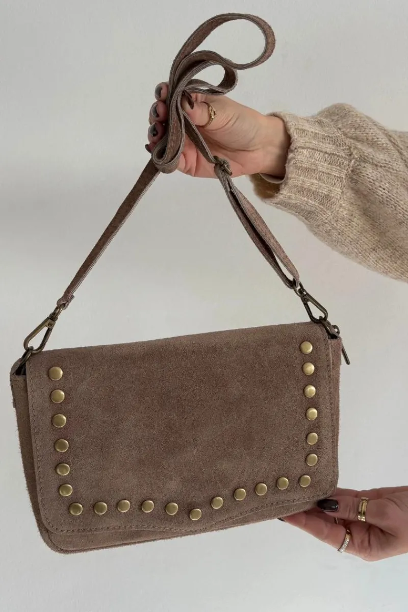 Torebka damska typu listonoszka wykonana z naturalnego zamszu to elegancki i modny dodatek, który doskonale dopełni wiele stylizacji. Klapę zdobią dżety, dodające całości wyrazistego charakteru. Model zapinany jest na klips magnetyczny, a wnętrze dodatkowo zabezpieczono zamkiem, co gwarantuje wygodę i bezpieczeństwo przechowywanych rzeczy. Torebka posiada odpinany, regulowany pasek, który pozwala dopasować ją do własnych potrzeb i nosić zarówno na ramieniu, jak i w dłoni. W środku znajduje się kieszonka na zamek, idealna na drobiazgi. To stylowy i funkcjonalny model, idealny zarówno do codziennych, jak i eleganckich stylizacji.