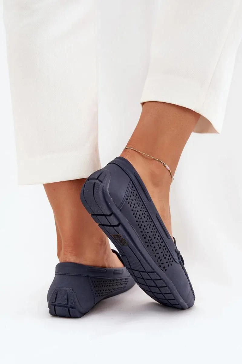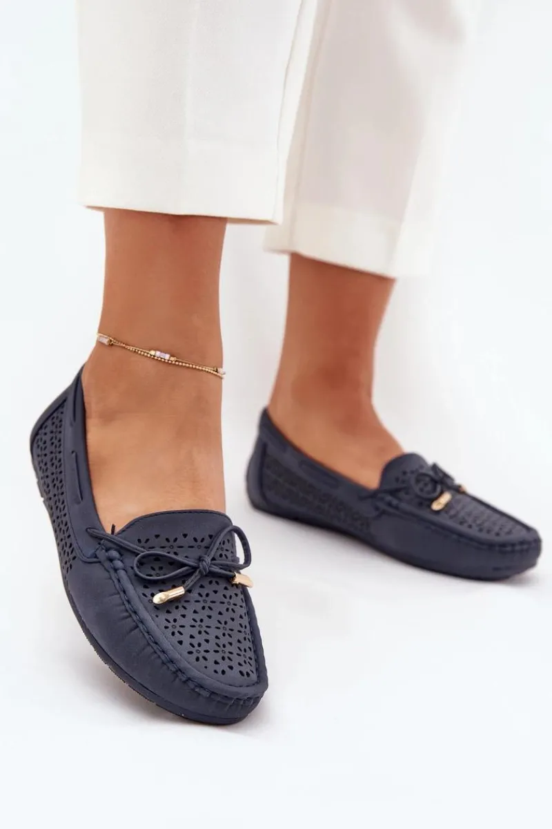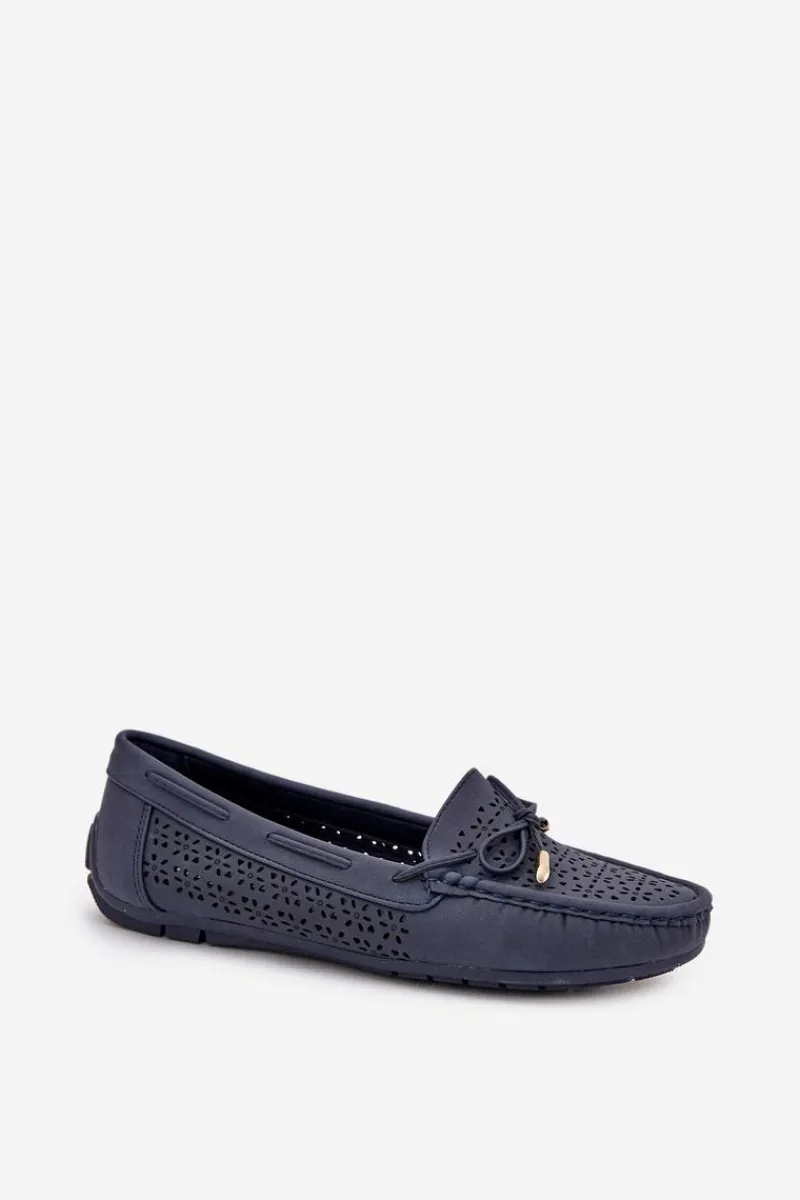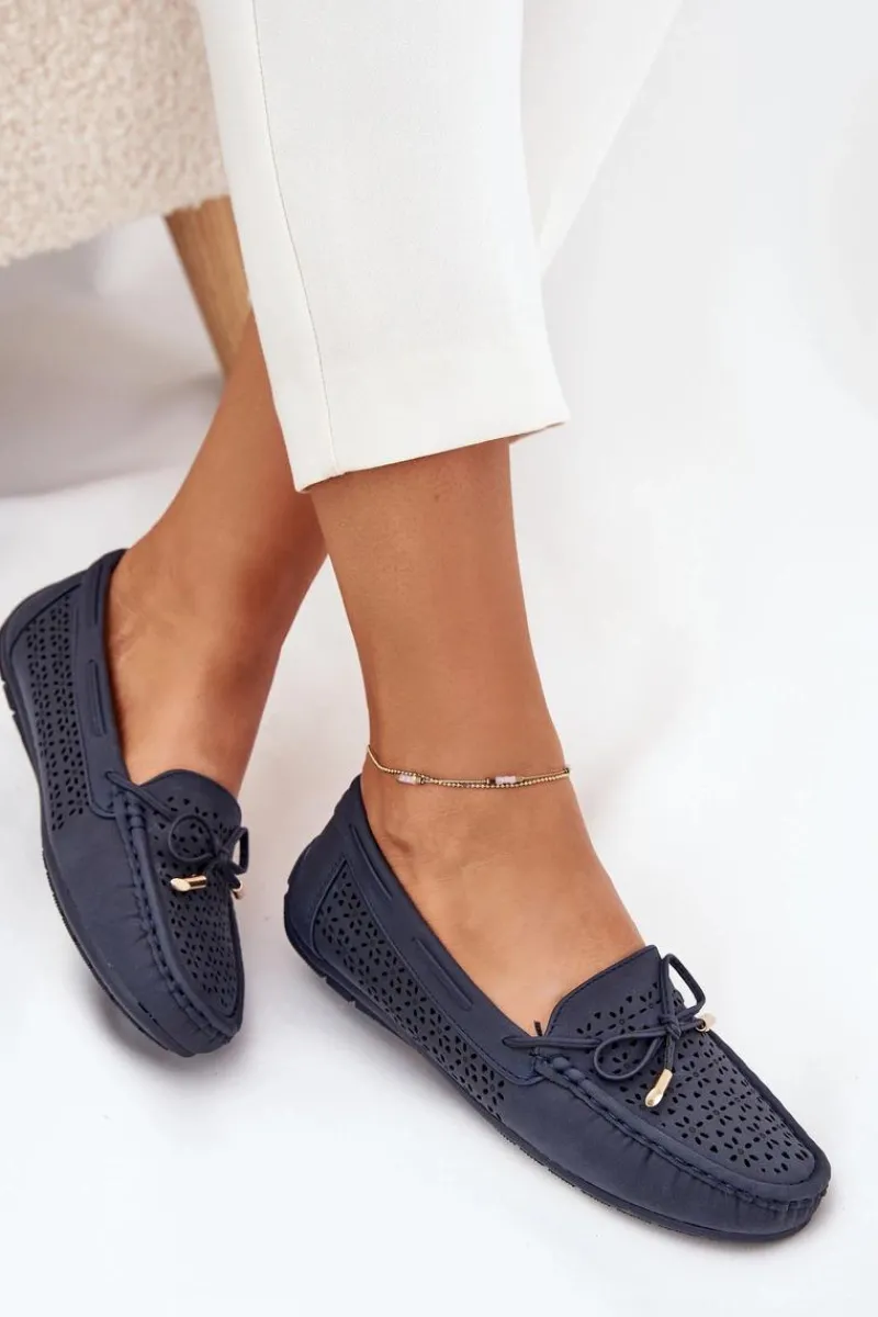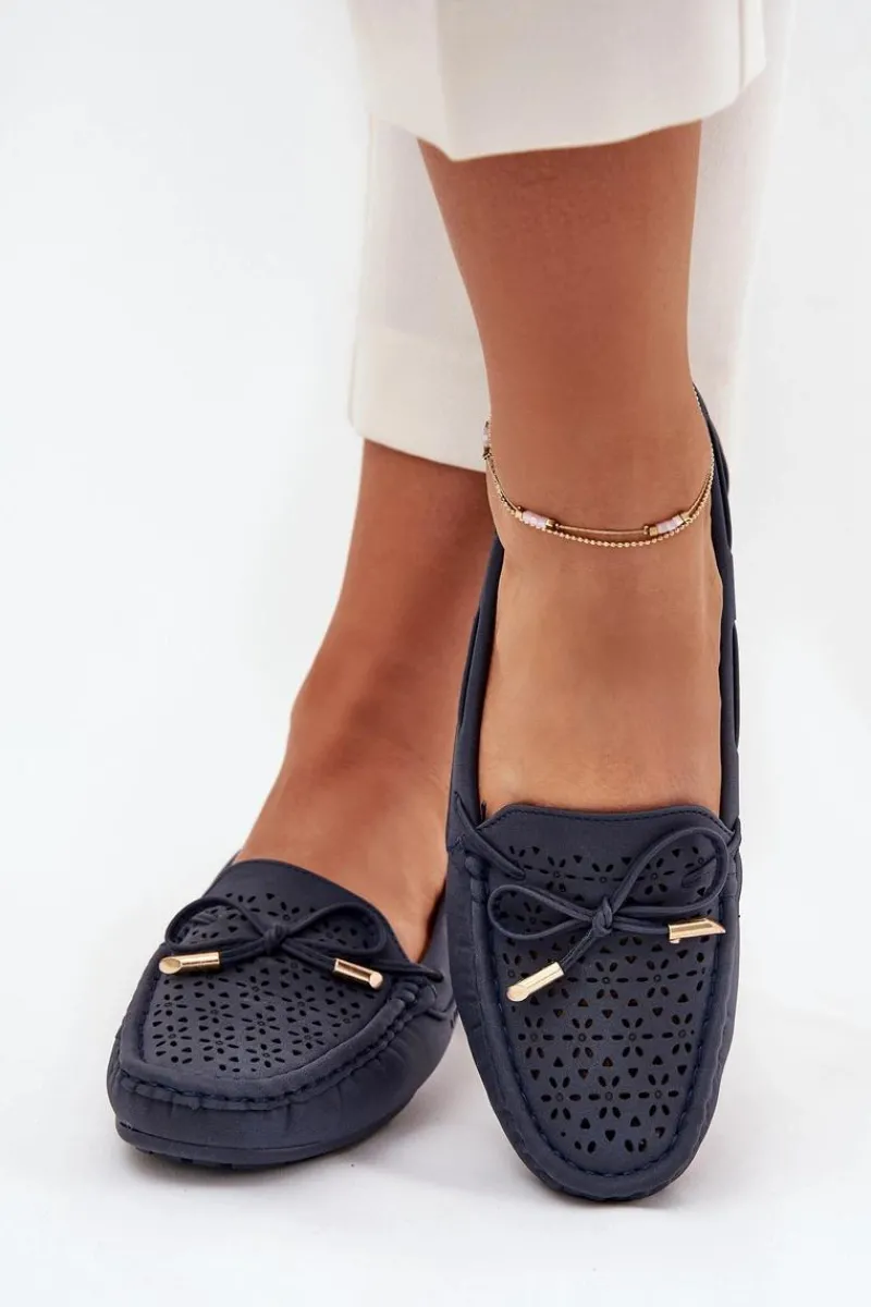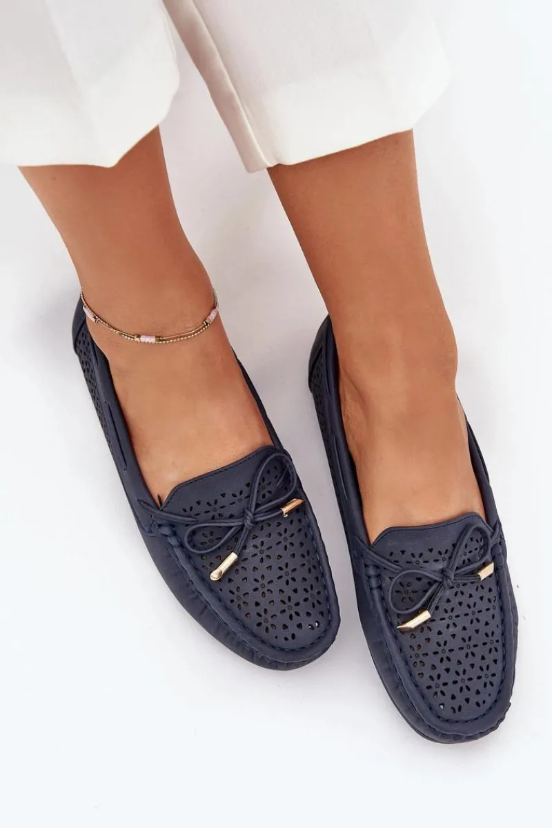 Mokasyny damskie wykonane z eko skóry, ozdobione ażurowym wzorkiem, to doskonała propozycja na wiosnę i lato. Z przodu znajdują się wiązanie w formie kokardki, które dodaje subtelności i uroku. Miękka wkładka zapewnia komfort przez cały dzień, a zaokrąglone noski gwarantują wygodę. Doskonałe do casualowych stylizacji, świetnie komponują się z sukienkami, spódnicami i spodniami, wprowadzając do każdej kreacji lekkość i elegancję. Przy wyborze rozmiaru prosimy sugerować się tabelą rozmiarów.