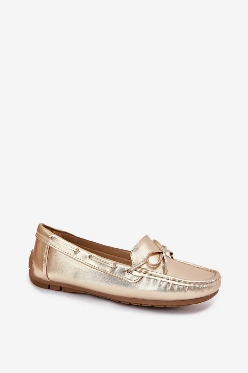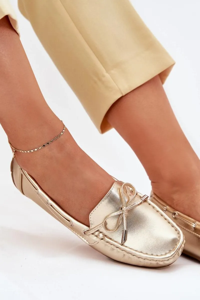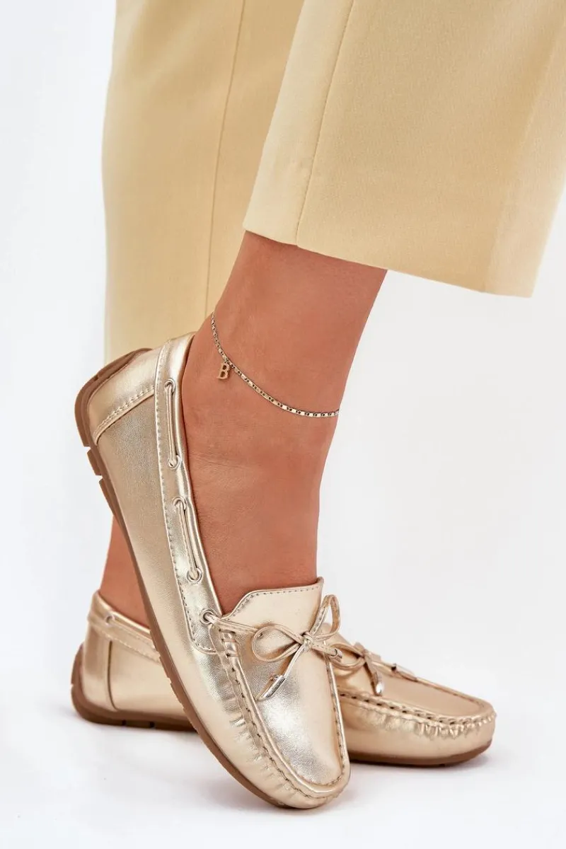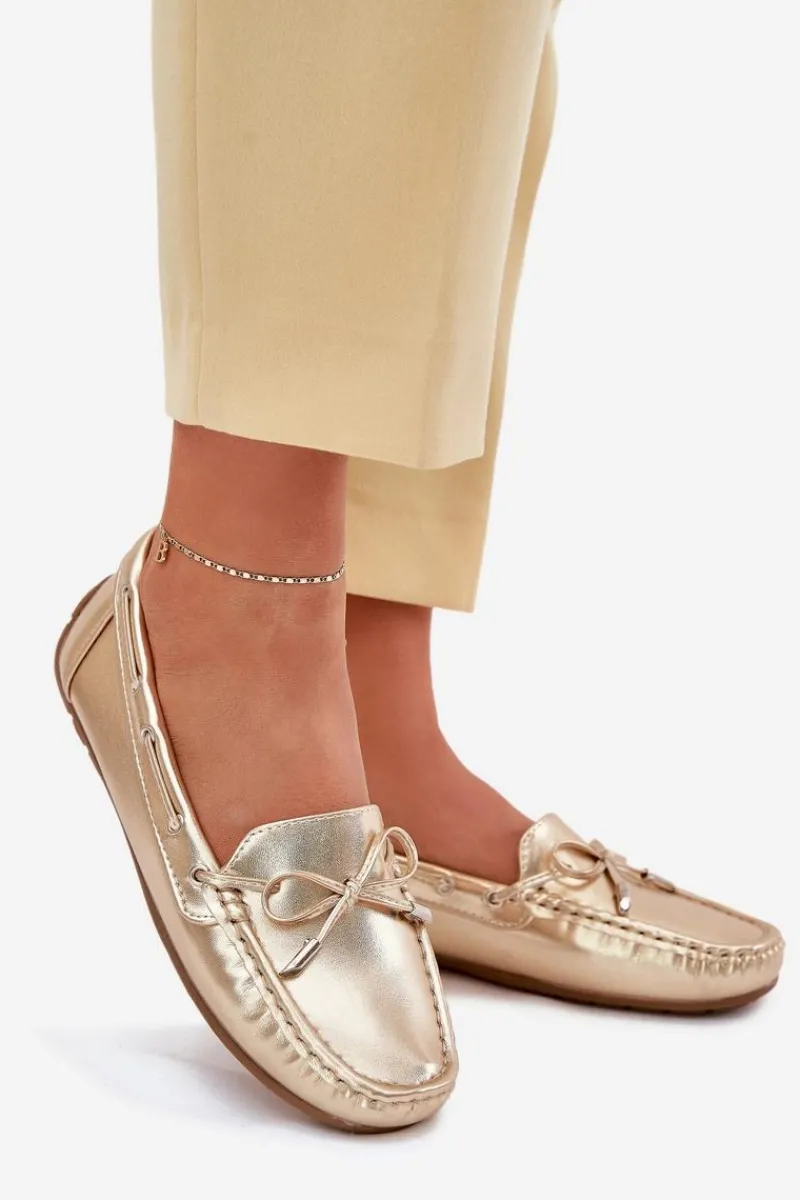 Damskie, klasyczne mokasyny zostały wykonane z eko skóry. Model ten posiada na przodzie ozdobną kokardkę oraz przeplatające się przez boki cholewki sznureczki. Mokasyny osadzono na antypoślizgowej podeszwie. Miękka wkładka z eko skóry zapewni komfort podczas użytkowania obuwia. Dodatkowo jest delikatnie perforowana. Koniecznie powinnaś je mieć w swojej kolekcji obuwia! Przy wyborze rozmiaru prosimy sugerować się tabelą rozmiarów.