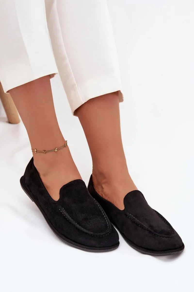 Mokasyny damskie wykonane z eko zamszu to klasyczna i wygodna propozycja na co dzień. Osadzone na płaskiej podeszwie gwarantują komfort noszenia, a zaokrąglone noski nadają im ponadczasowego charakteru. To uniwersalne obuwie, idealne na codzienne wyjścia, które świetnie sprawdzi się zarówno w casualowych, jak i nieco bardziej eleganckich stylizacjach. Przy wyborze rozmiaru prosimy sugerować się tabelą rozmiarów.