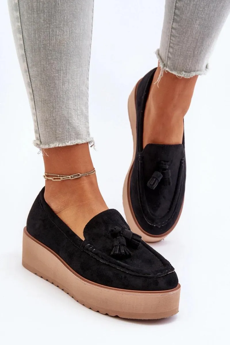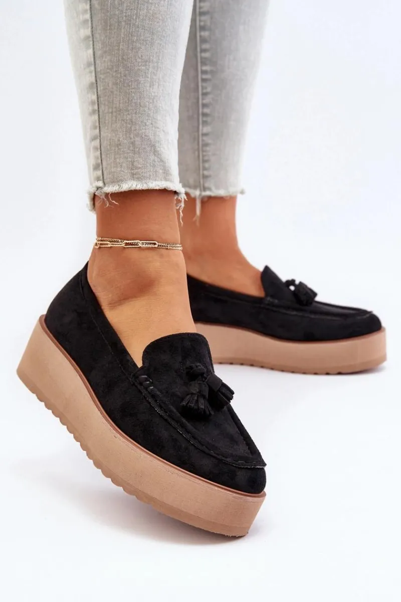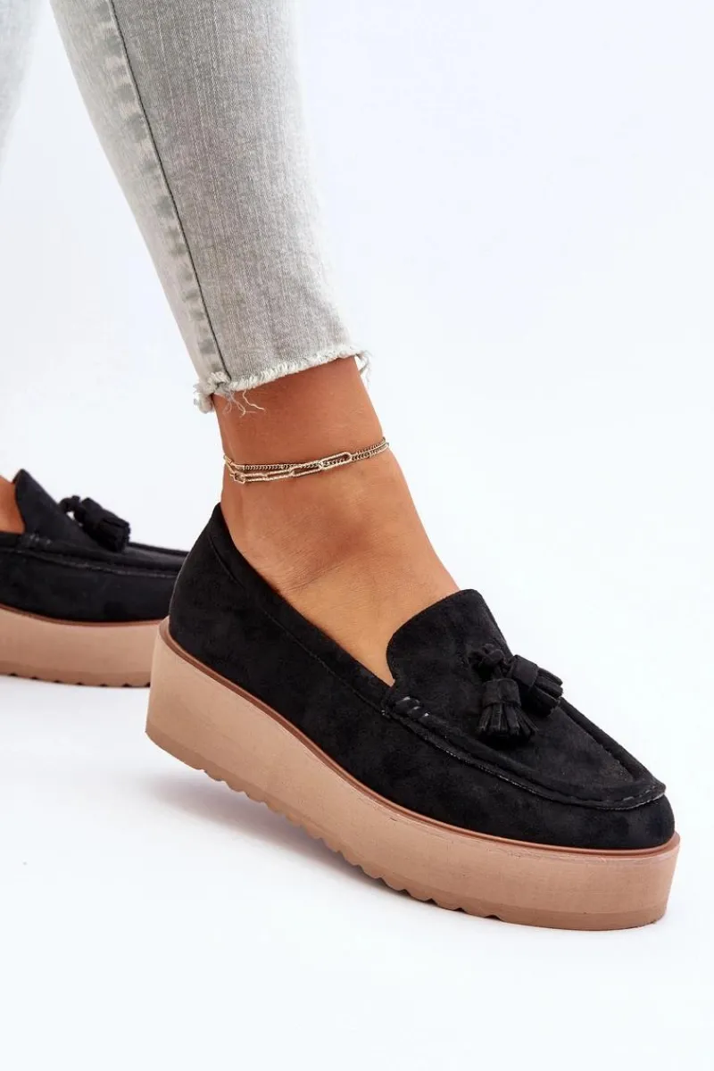 Loafersy Damskie|Mokasyny Na Platformie>Boto Mokasyny Damskie Na Platformie Z Frędzlami Czarne Mialani
