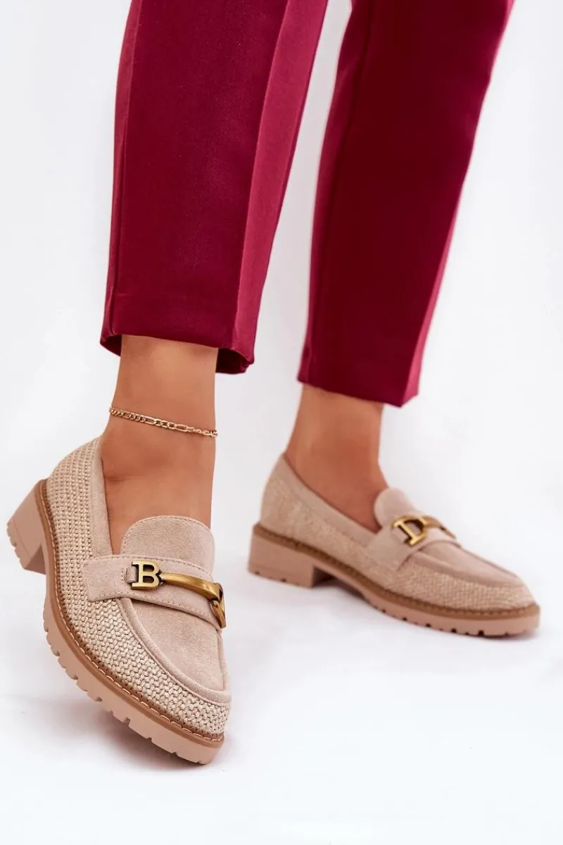 Loafersy Damskie|Mokasyny Płaskie>Boto Mokasyny Damskie Z Plecionką I Złotym Detalem Beżowe Seffolia Beżowy
